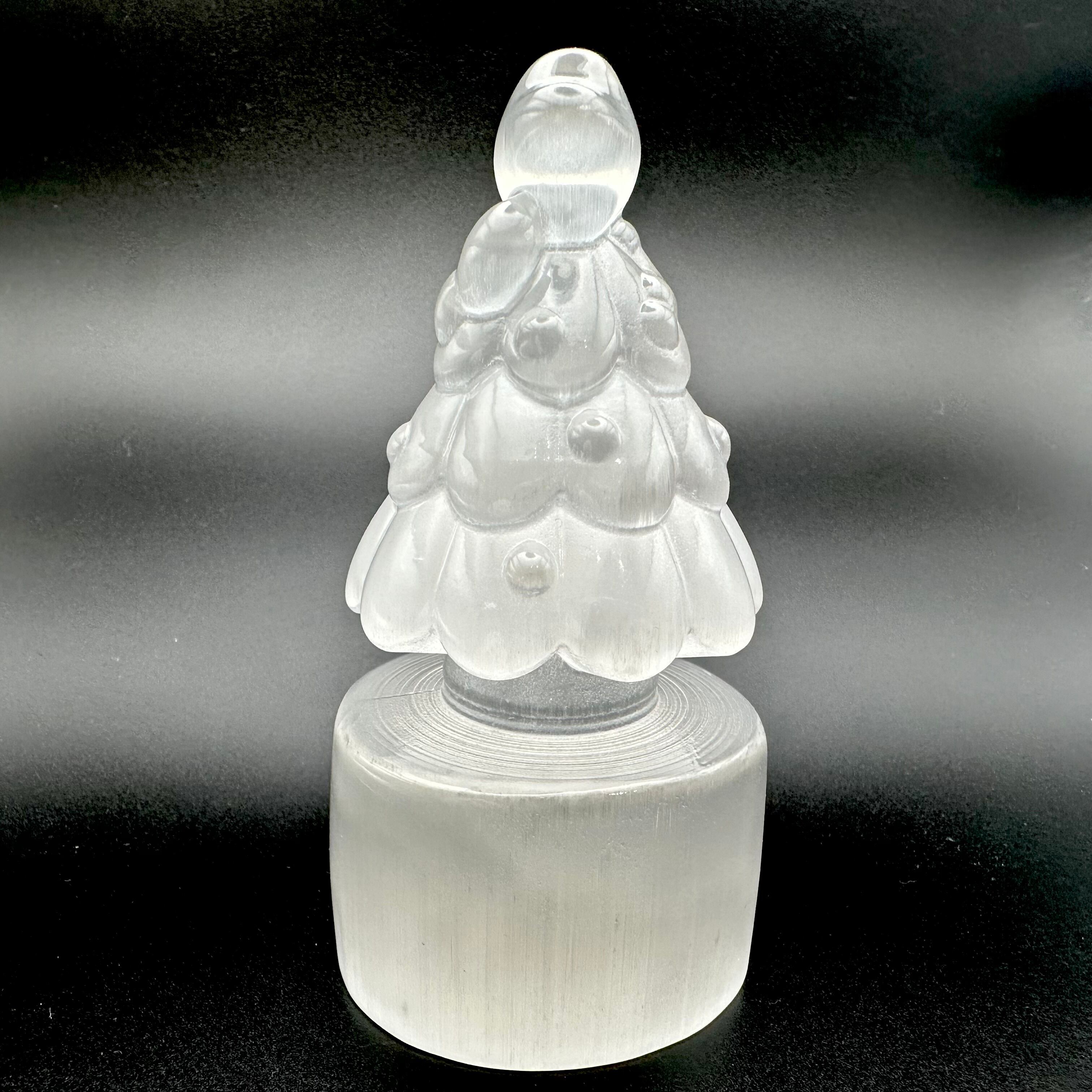 ツヤツヤのとても美しいセレナイトで一つ一つ手で彫られたクリスマスツリーです。