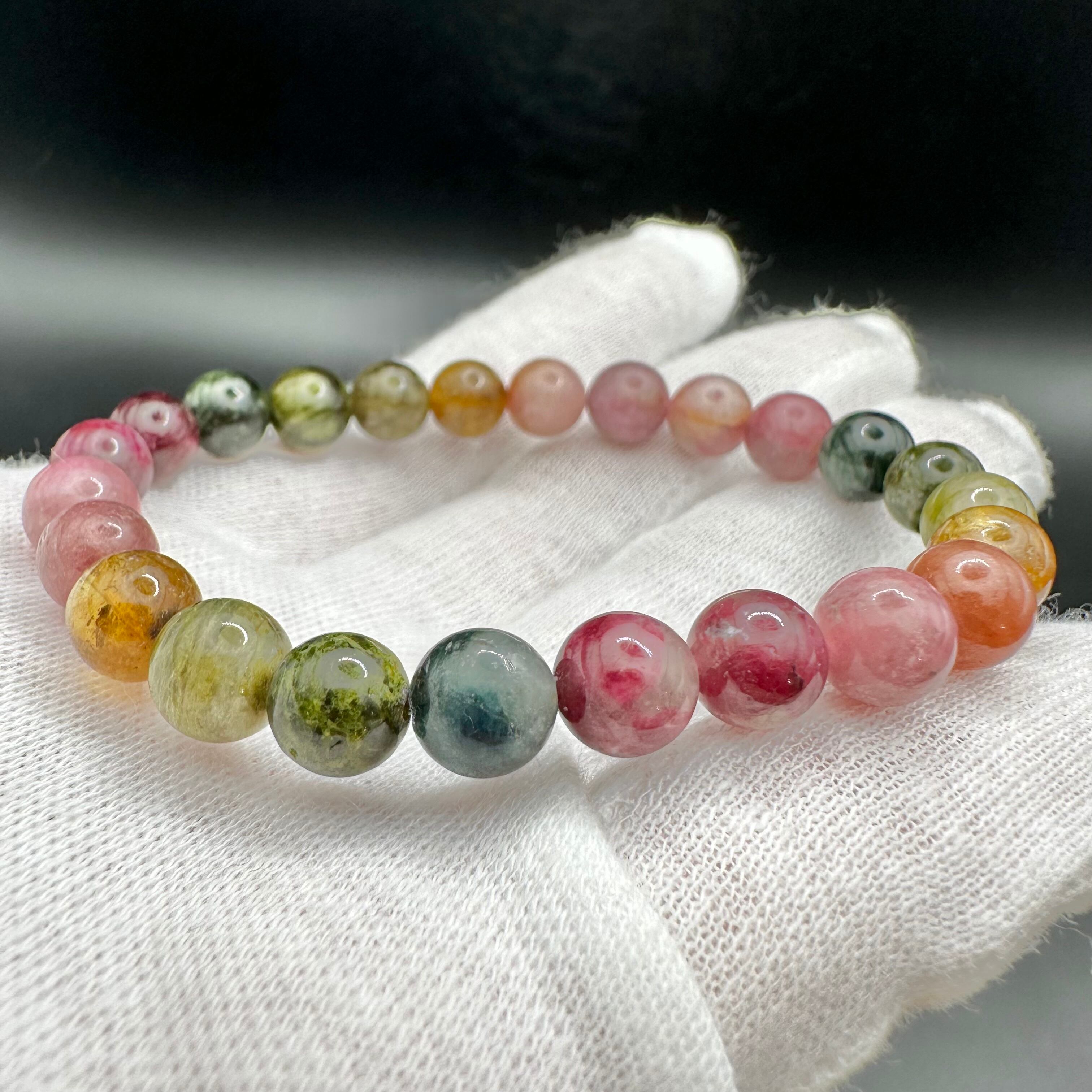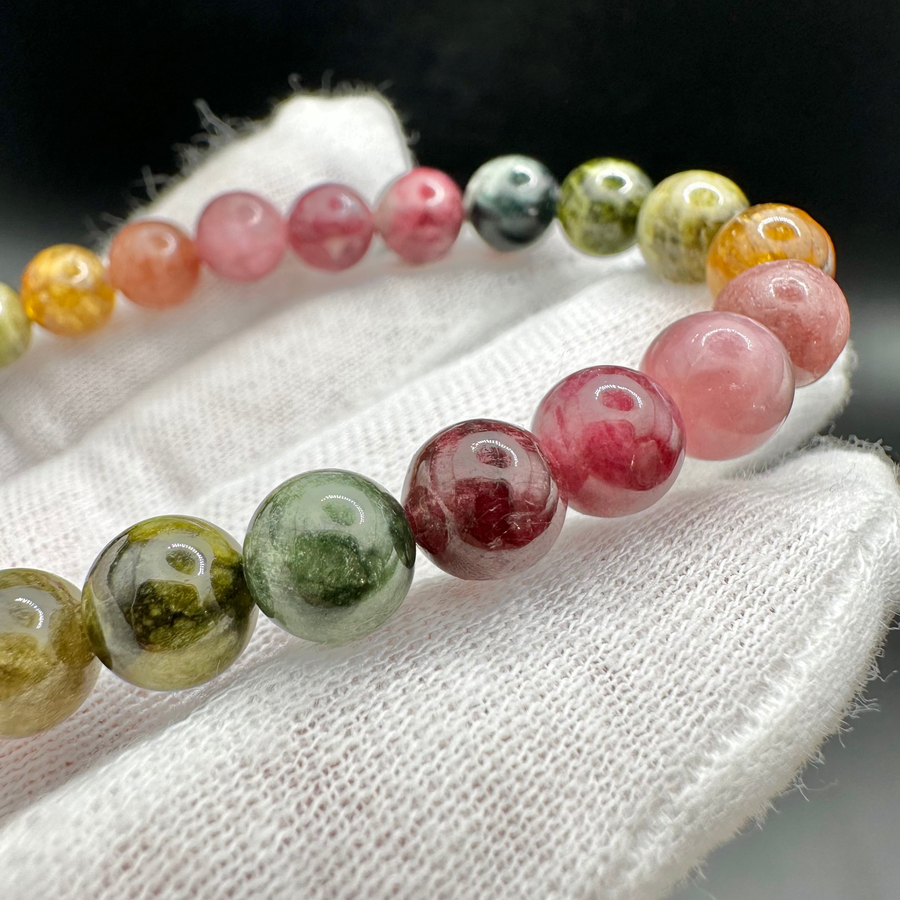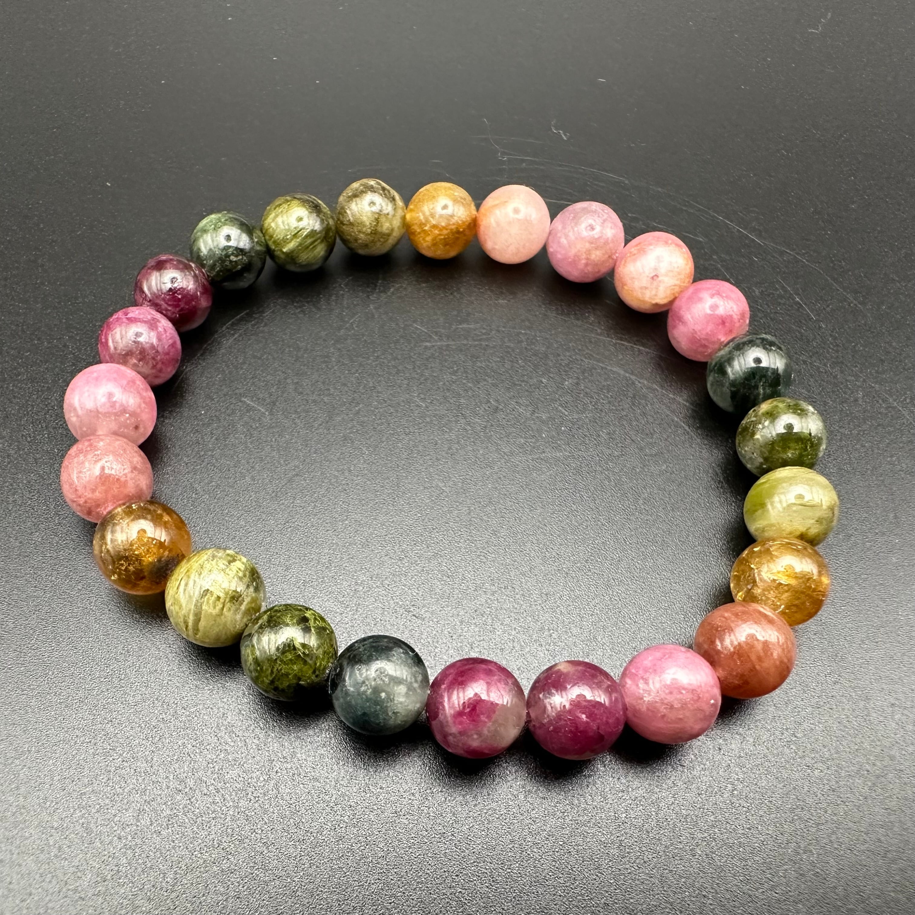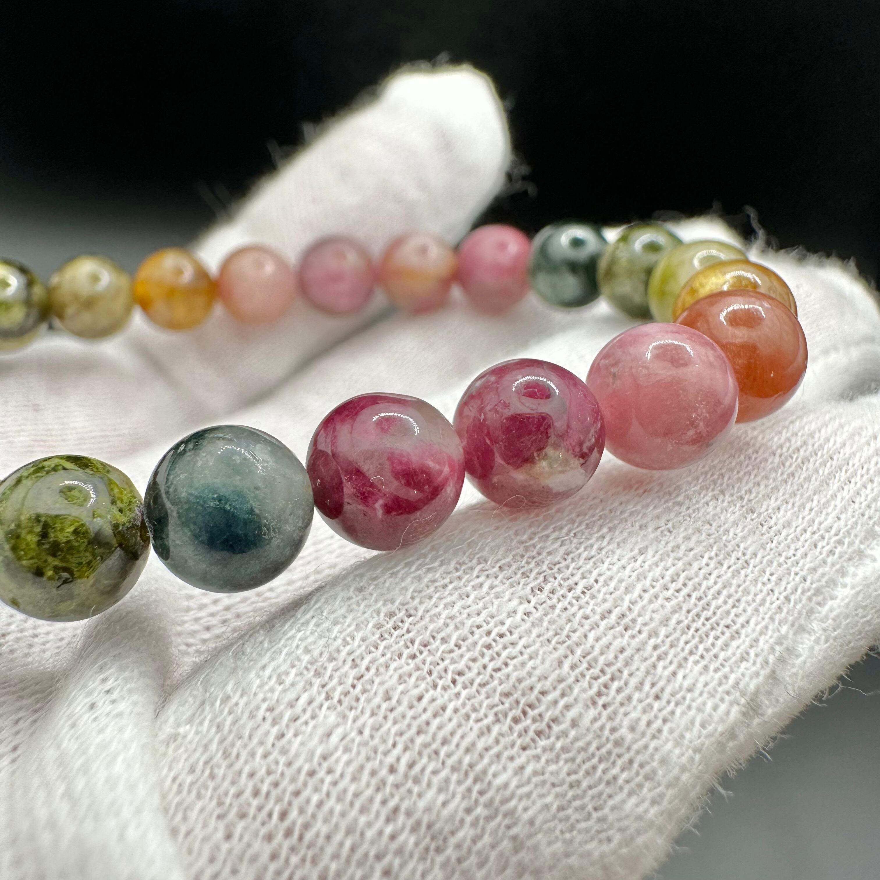 レアカラーもたくさん入った見ていても楽しめる可愛いトルマリンのブレスレットです。