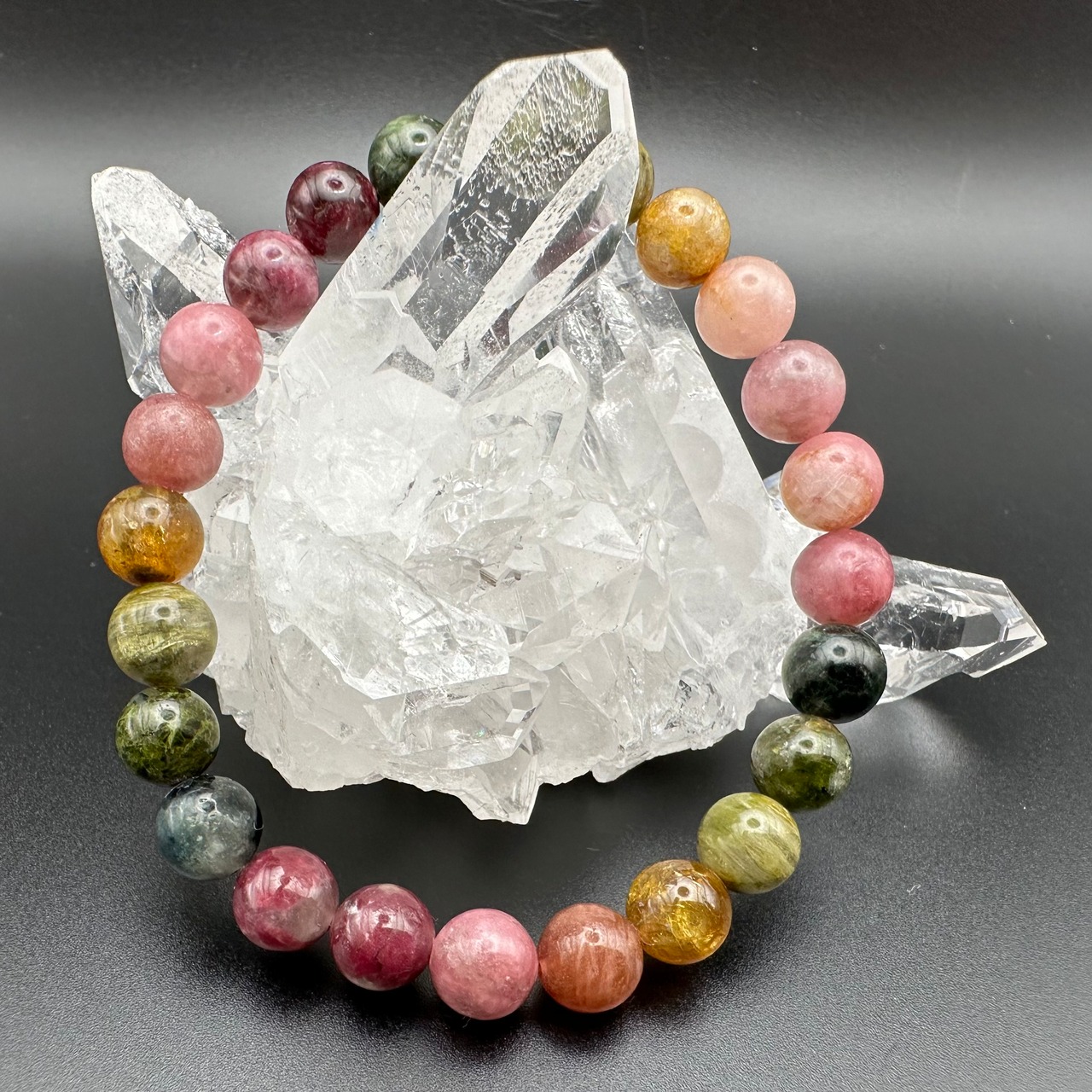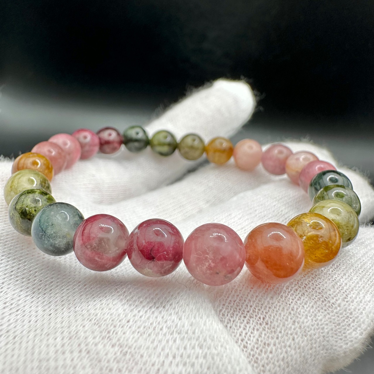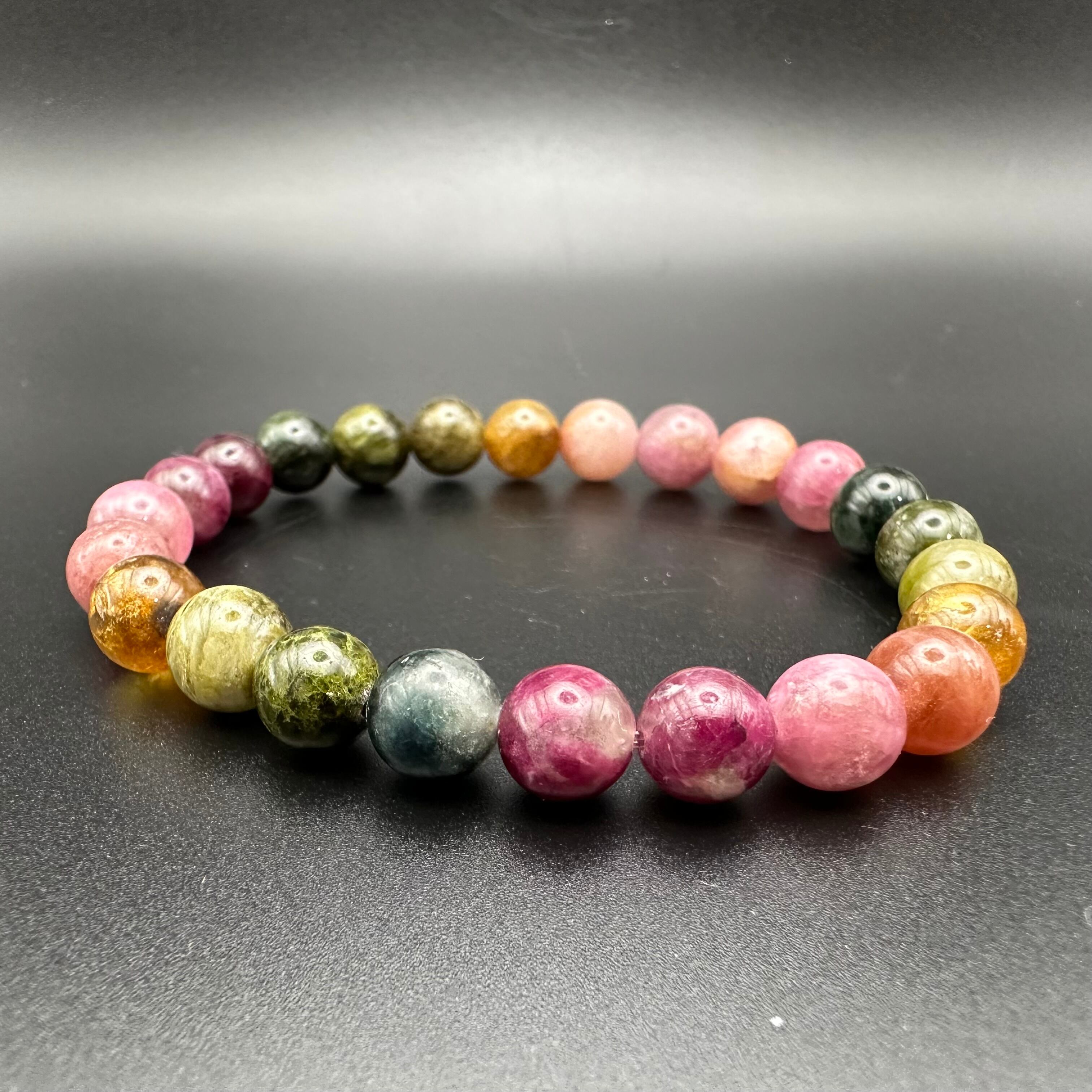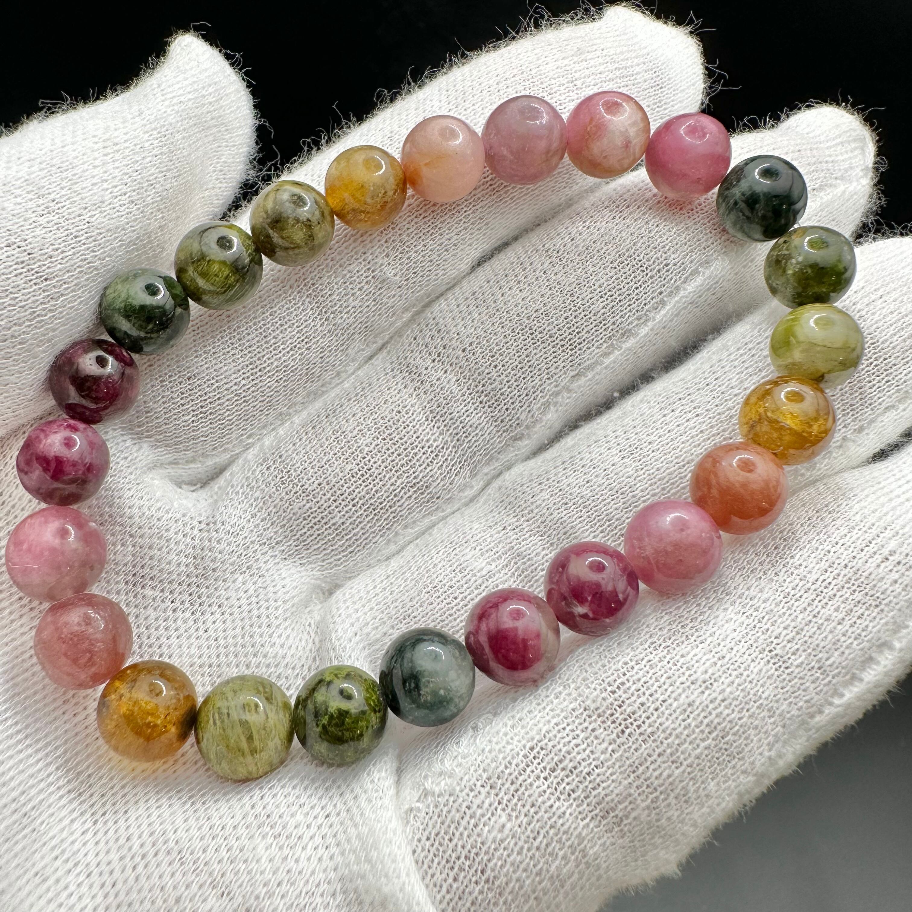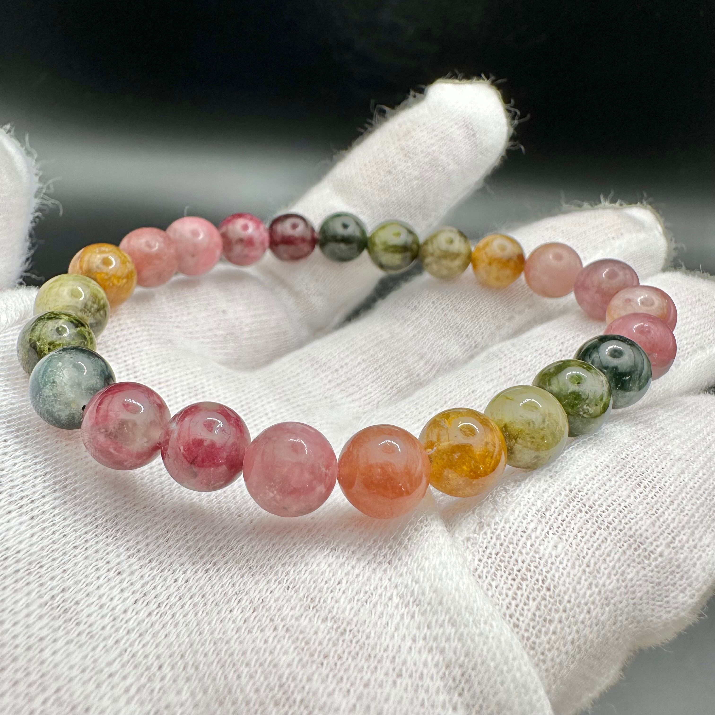 レアカラーもたくさん入った見ていても楽しめる可愛いトルマリンのブレスレットです。