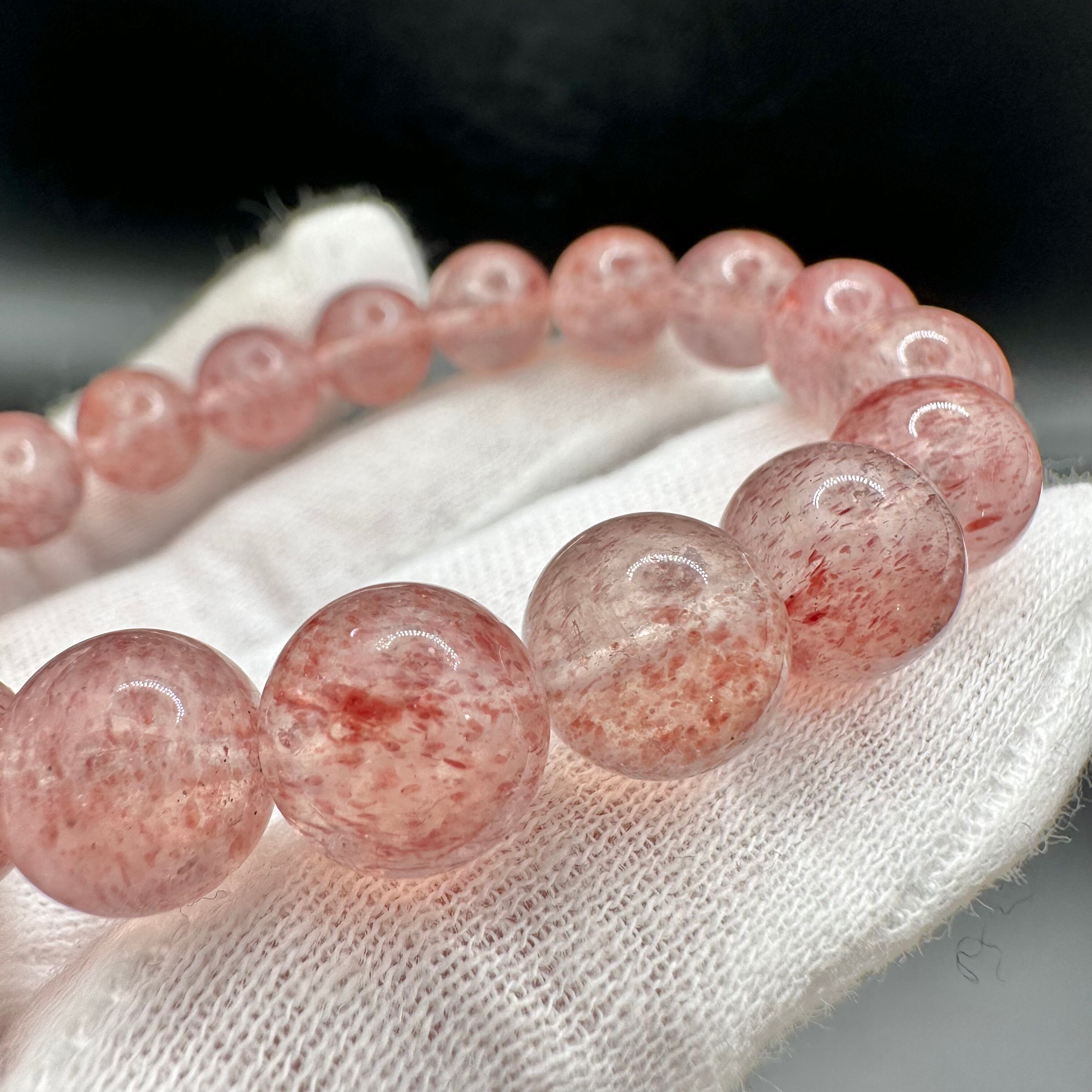 赤っぽい粒々のピンクエピドートとキラキラと細かく輝くマイカ、2種類の鉱物が水晶にインクルージョンされた、とても美しいブレスレットです。