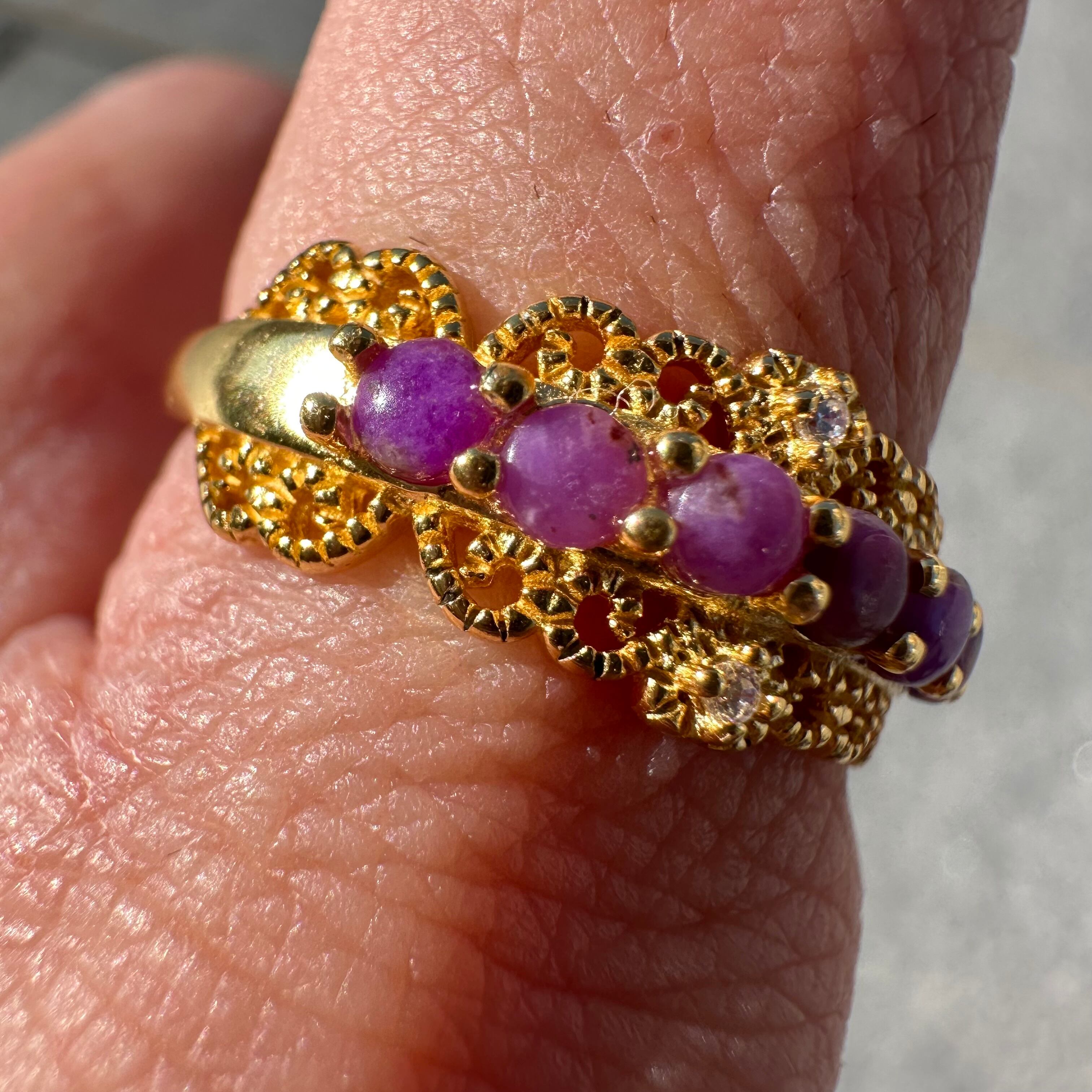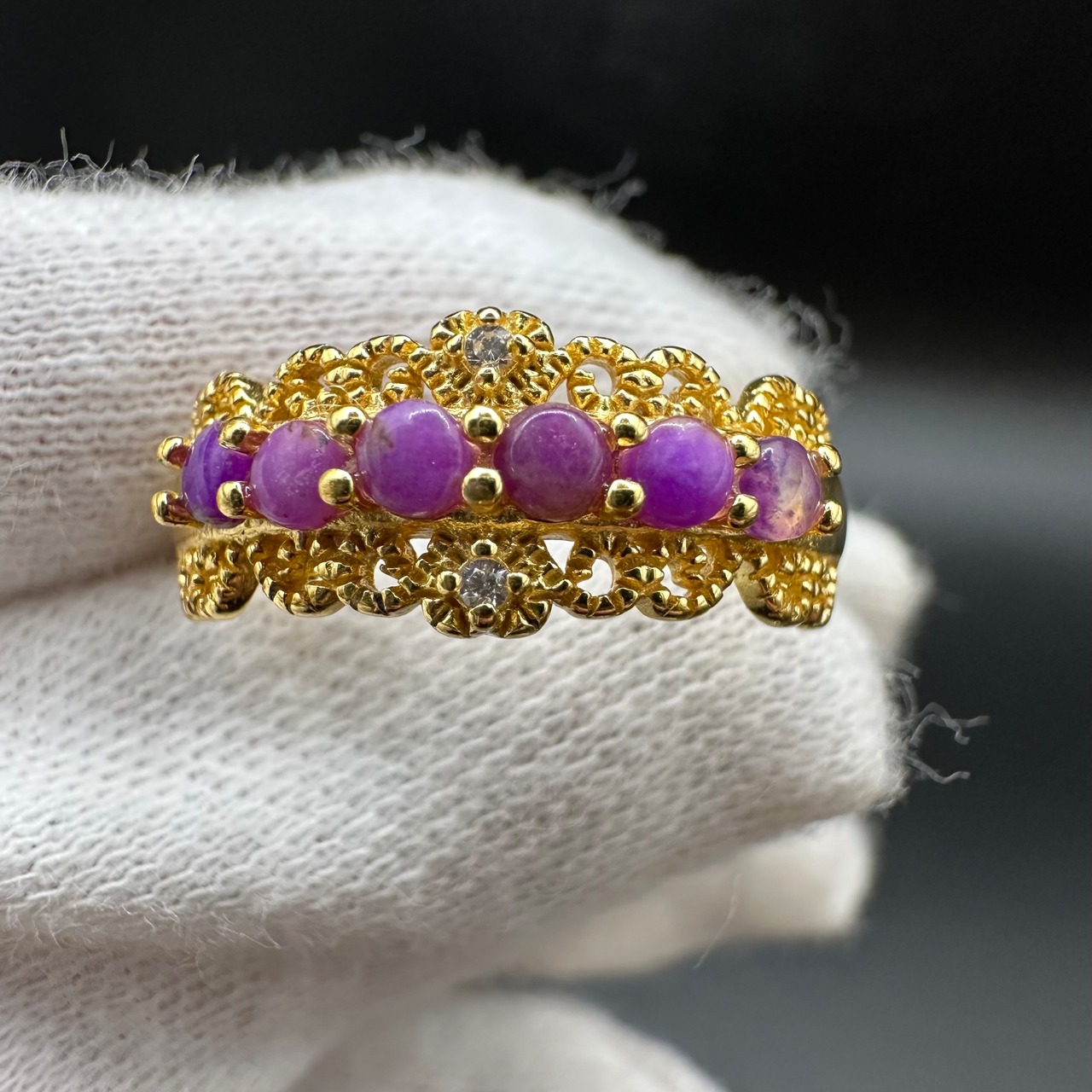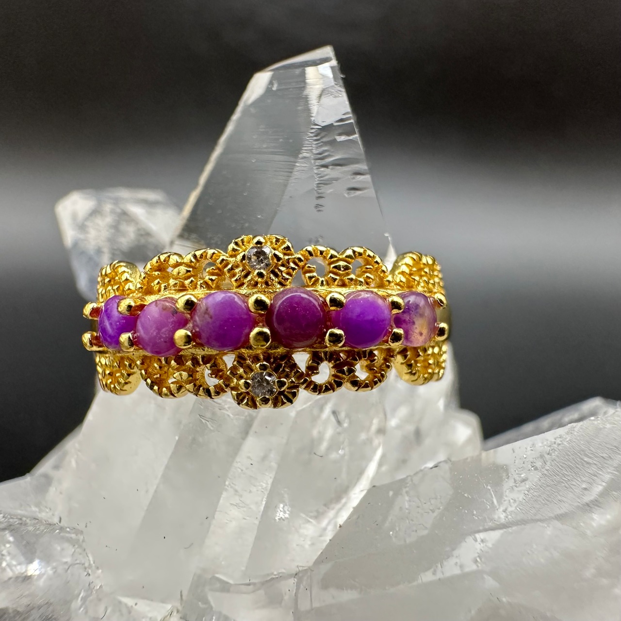 今回は小さいながらも素晴らしい発色のスギライトを贅沢にあしらったデザインもフェミニンなリングが入荷しました。