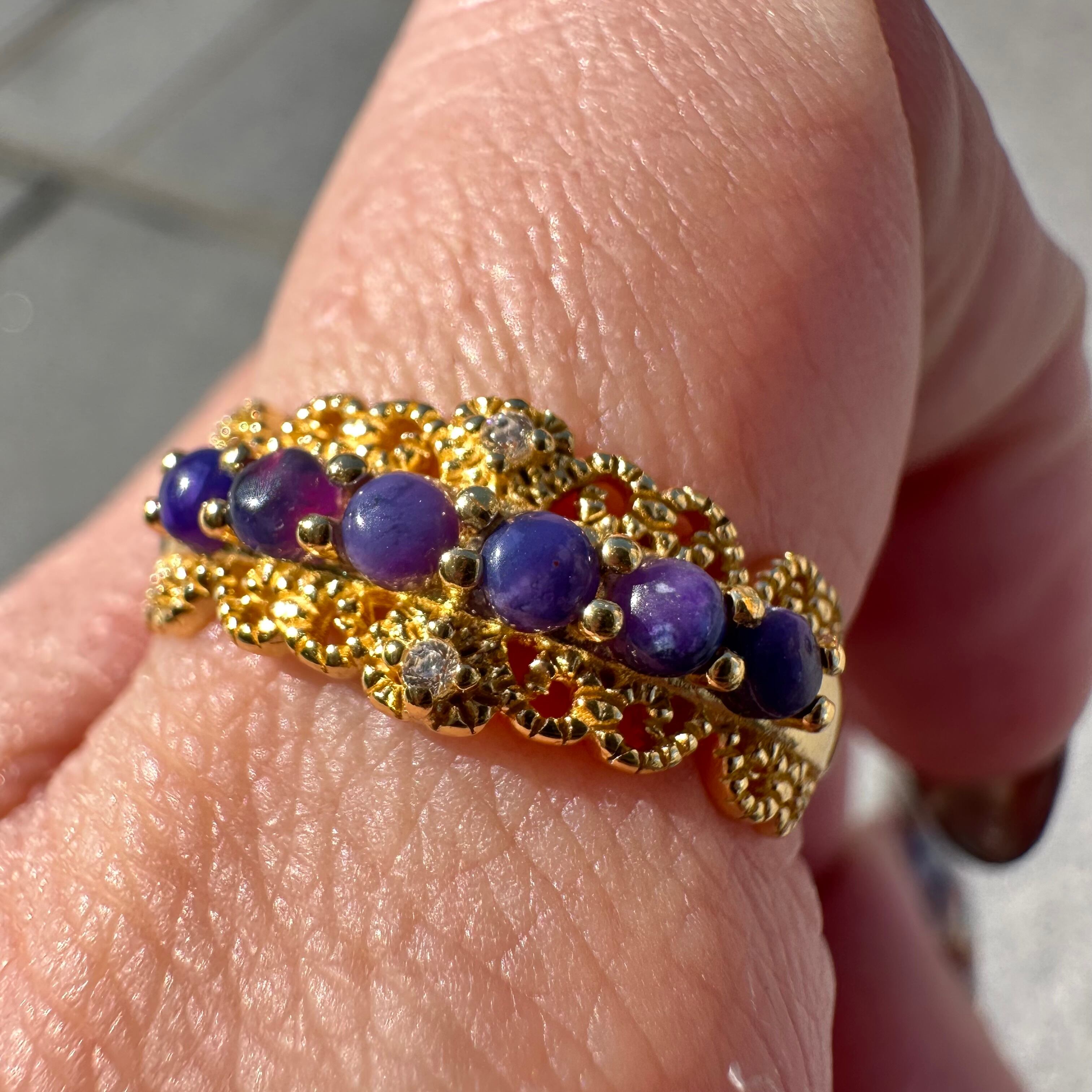 今回は小さいながらも素晴らしい発色のスギライトを贅沢にあしらったデザインもフェミニンなリングが入荷しました。