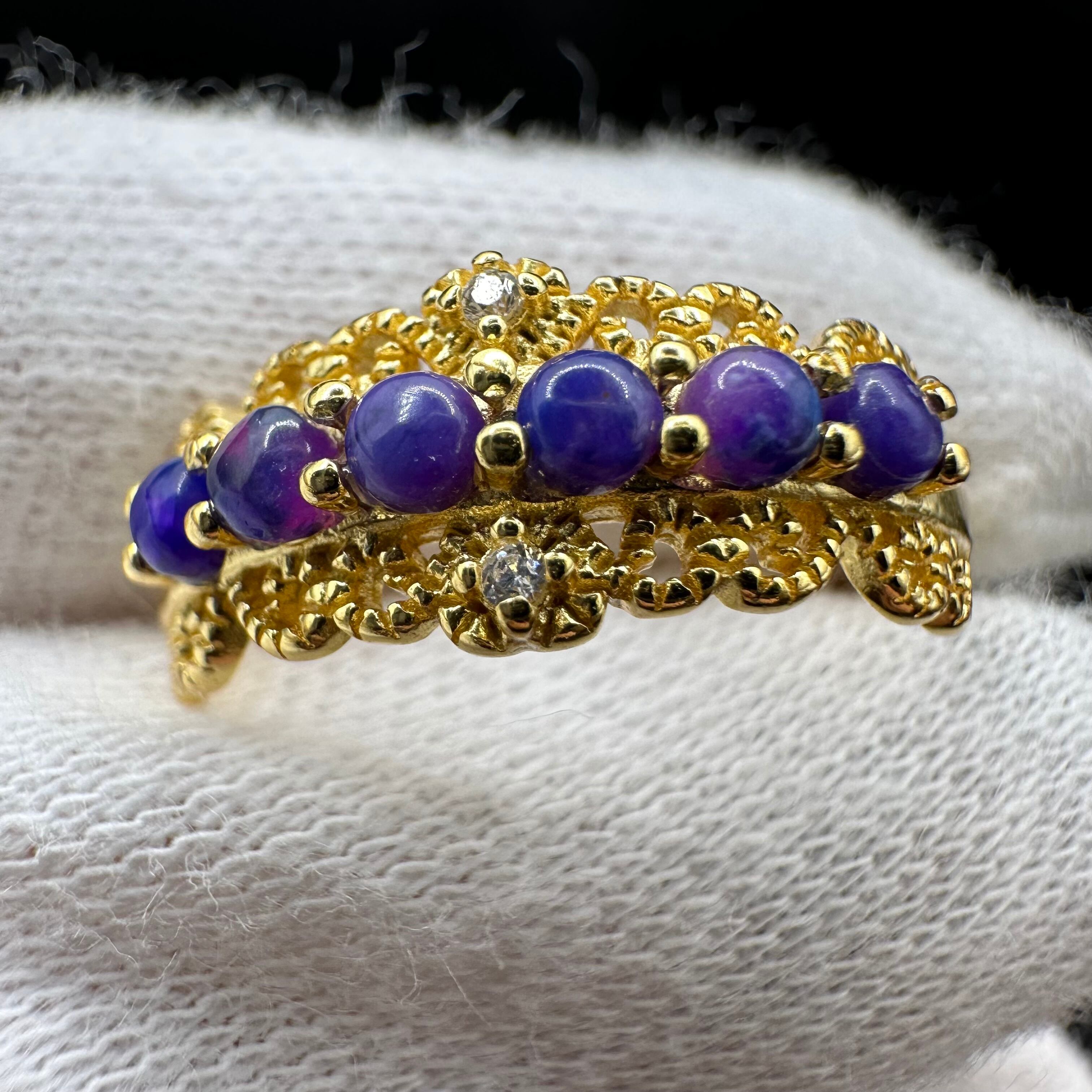 パープルとブルーが混ざり合った素晴らしい発色のスギライトが6石も使用されています。