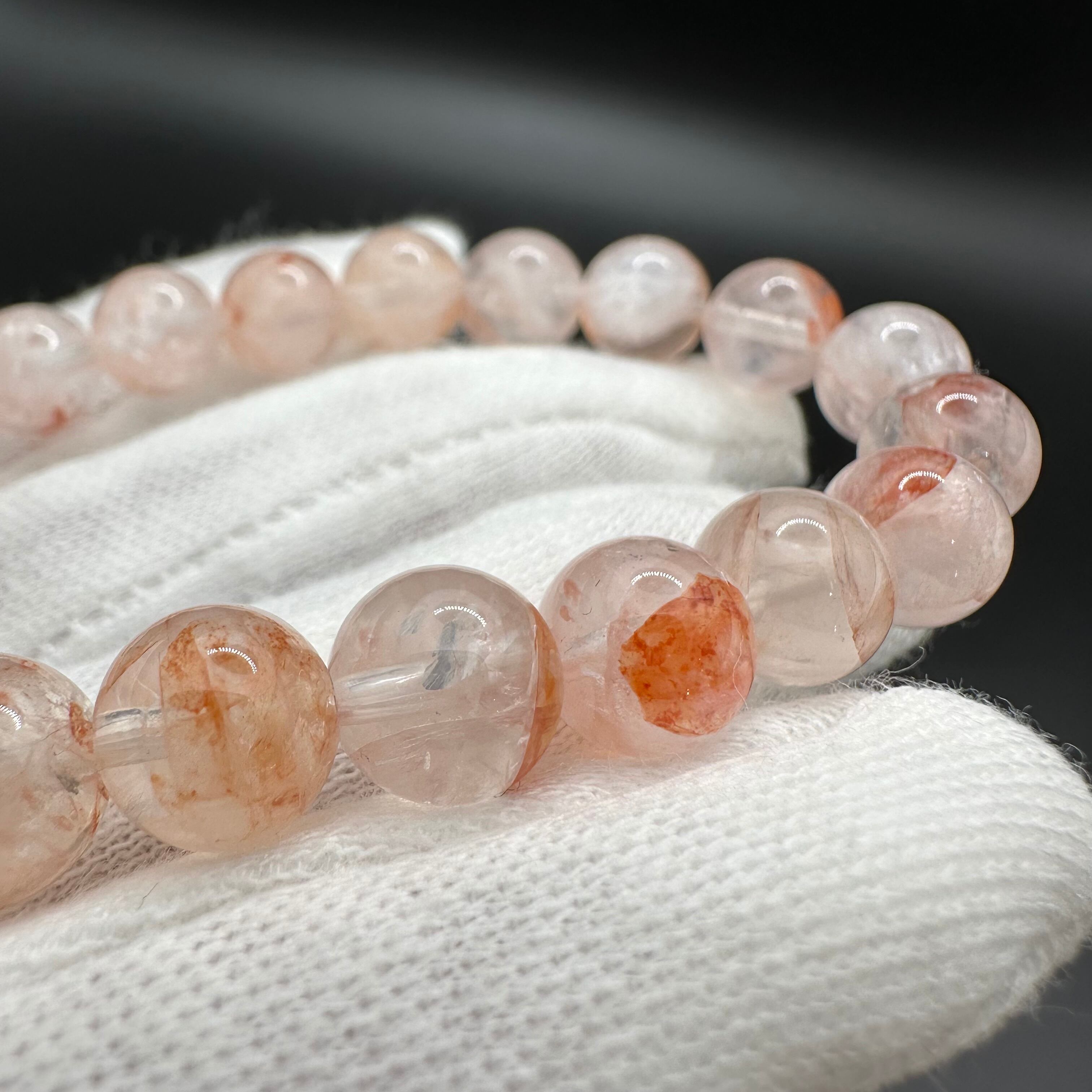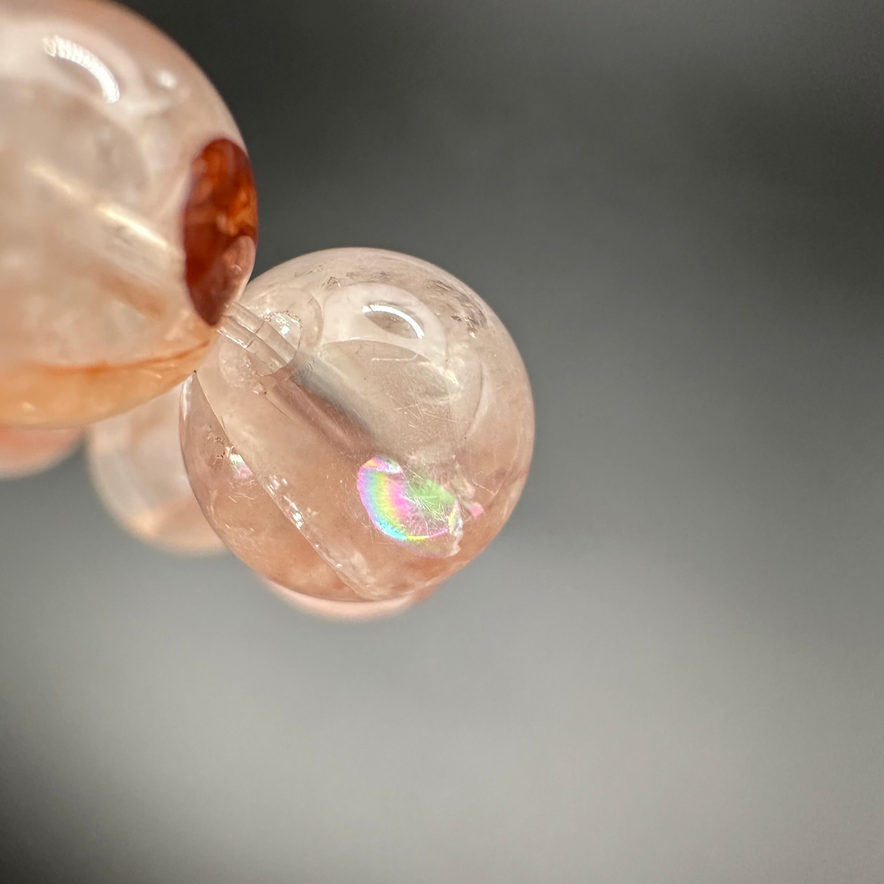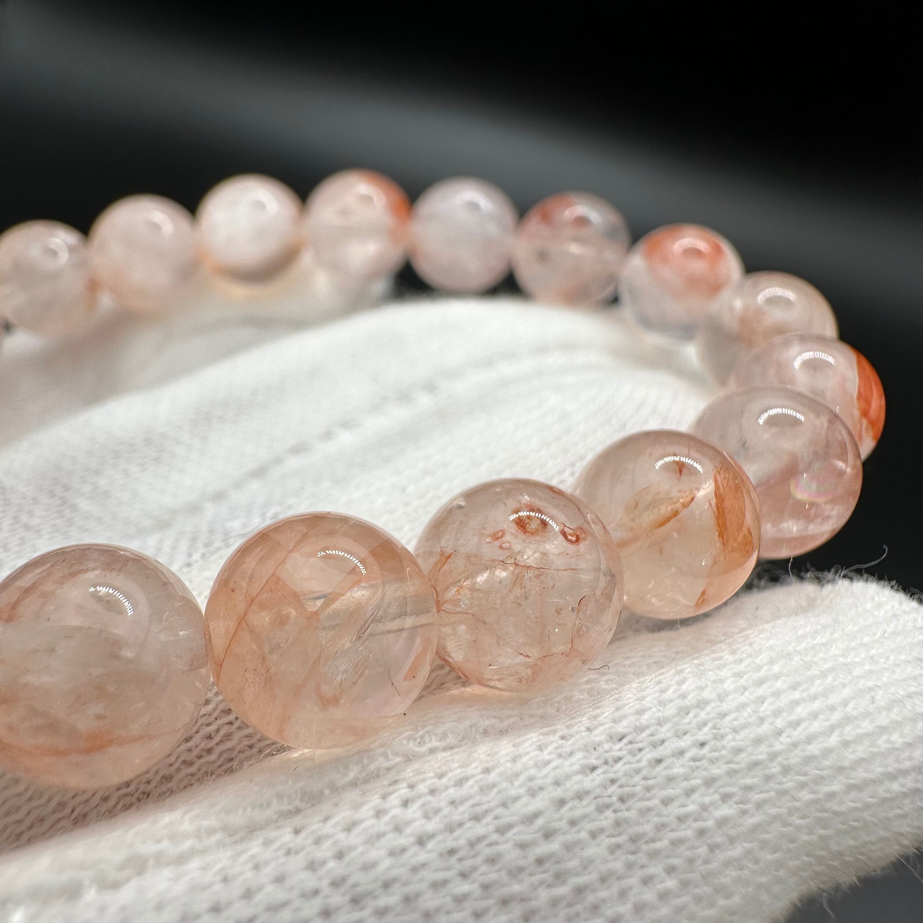 こちらのブレスレットは鉄系成分が薄かったうえ、水分の蒸発がゆっくりだったため水晶全体がピンクっぽい色味になったと思われます。