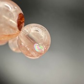 光にあたるとアイリス現象と重なり、ピンク色に染まった水晶と相まって素晴らしい姿を見せてくれます。