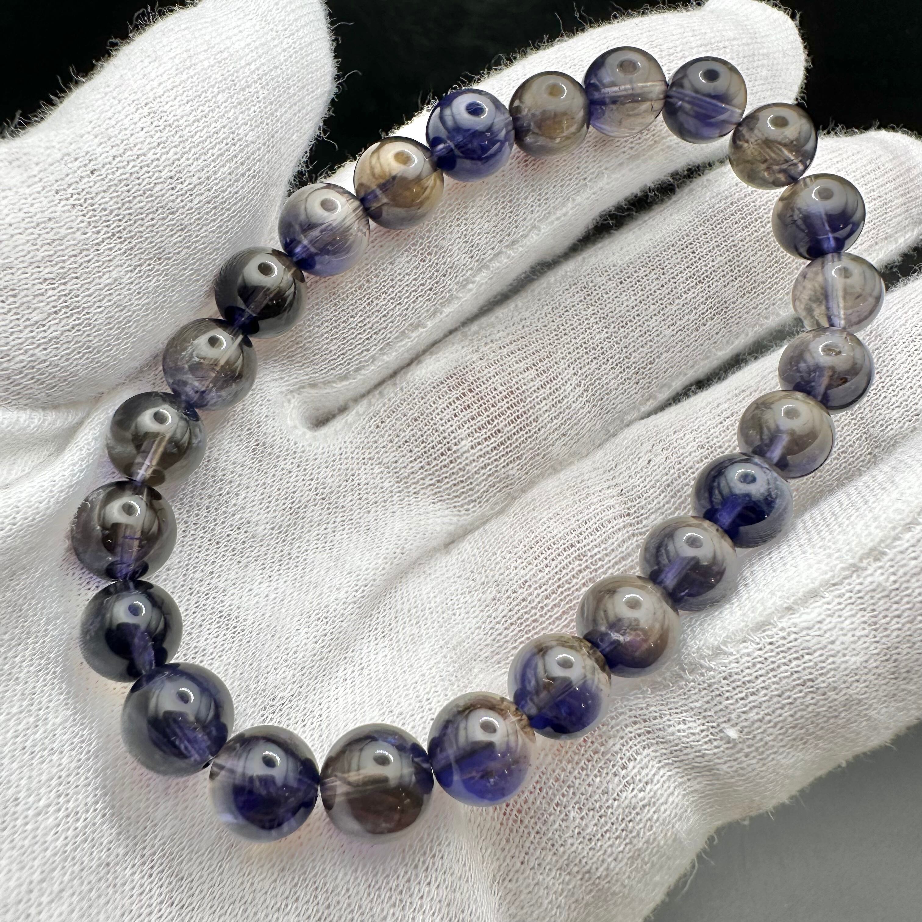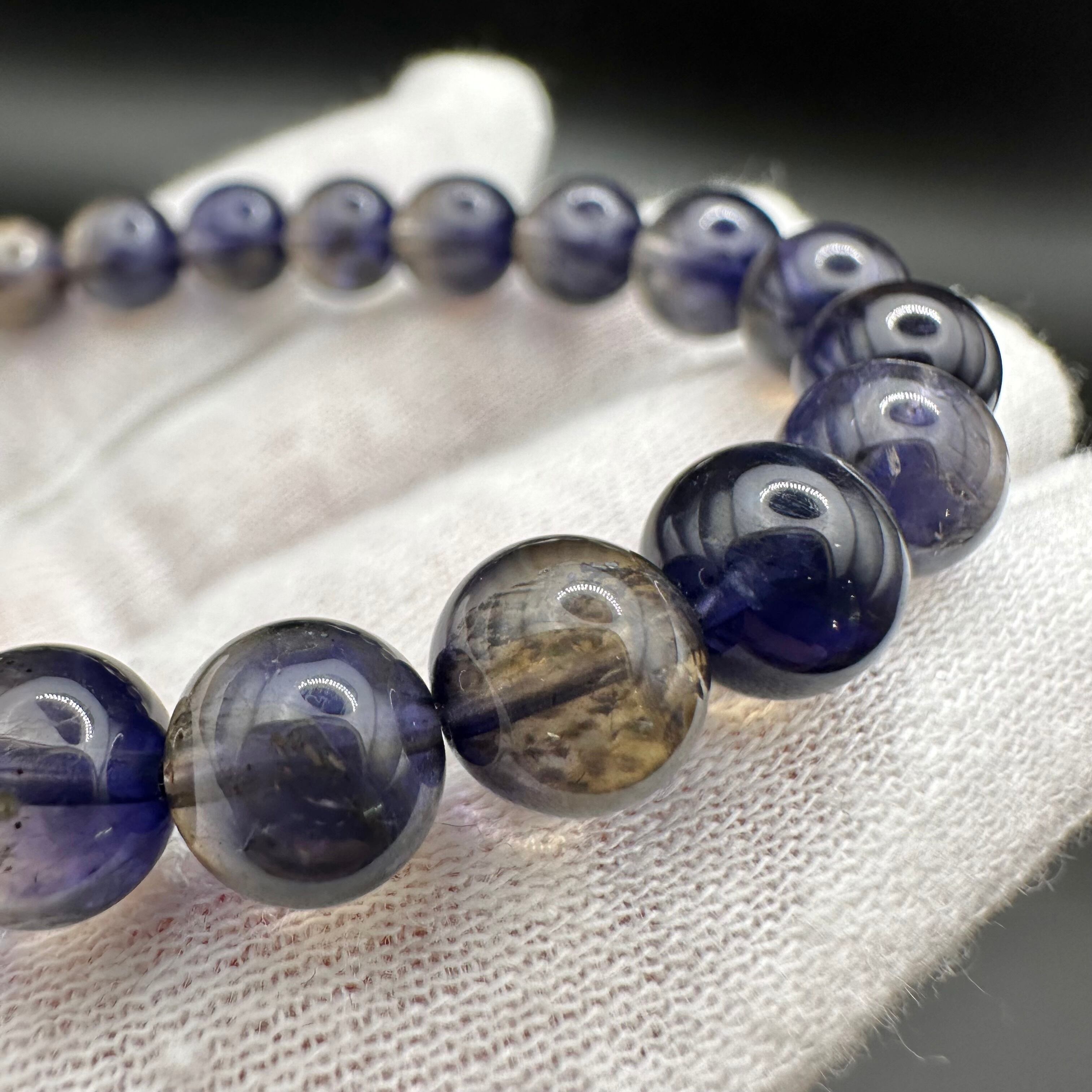 こちらのブレスレットは多色性が大変美しく、どの玉も回してみると色が変化してとても面白いです。