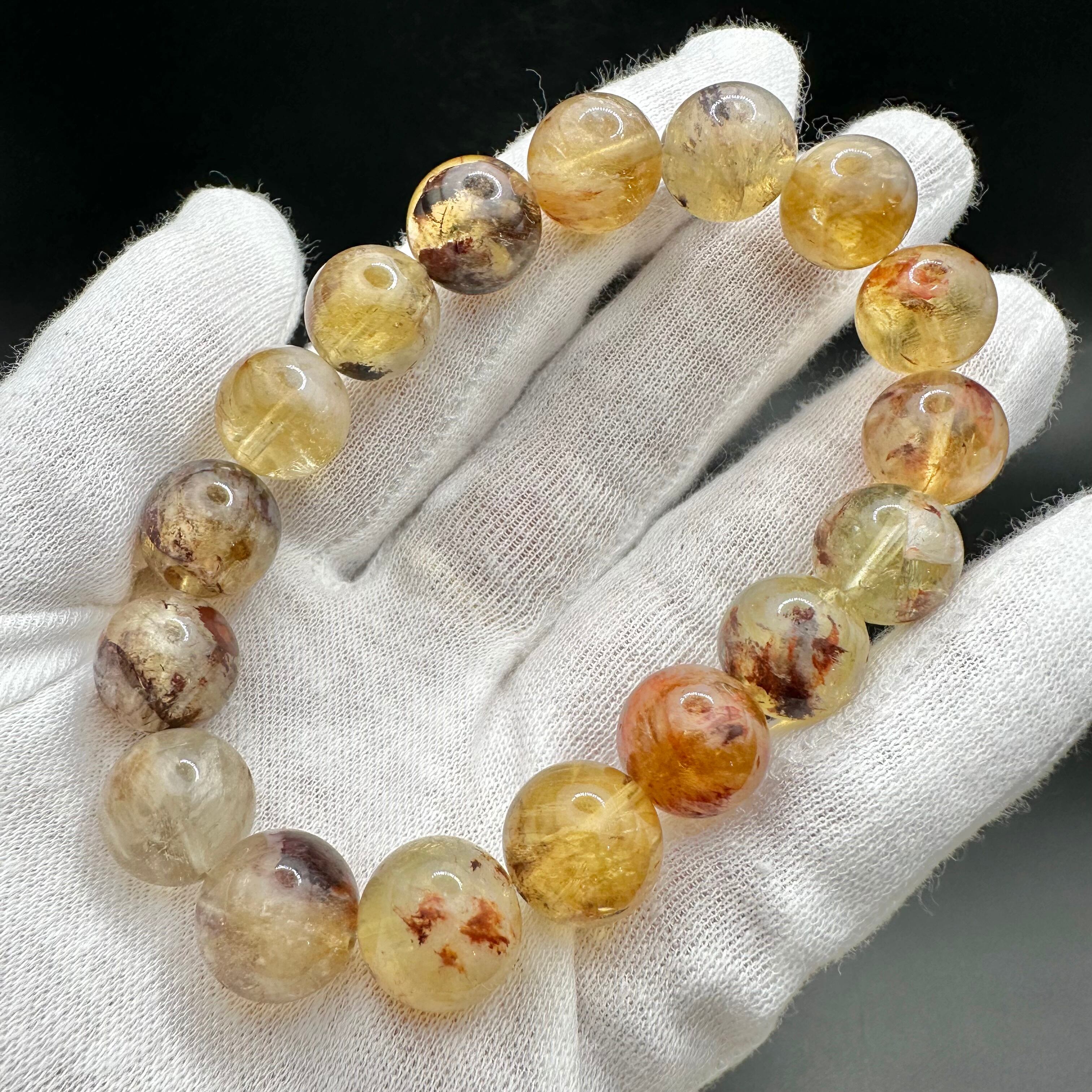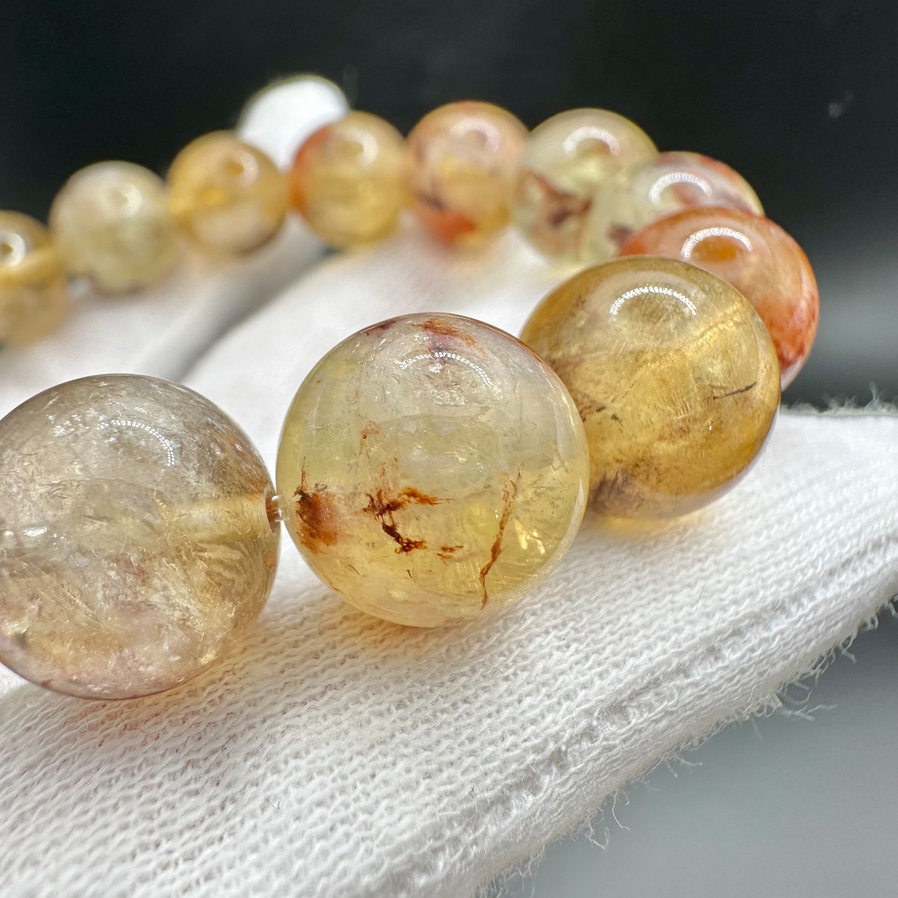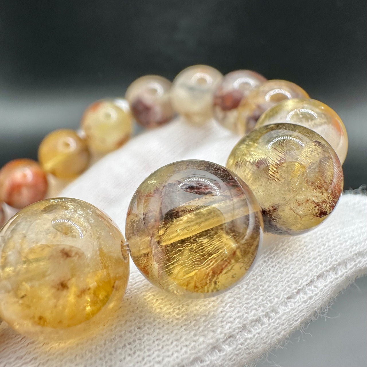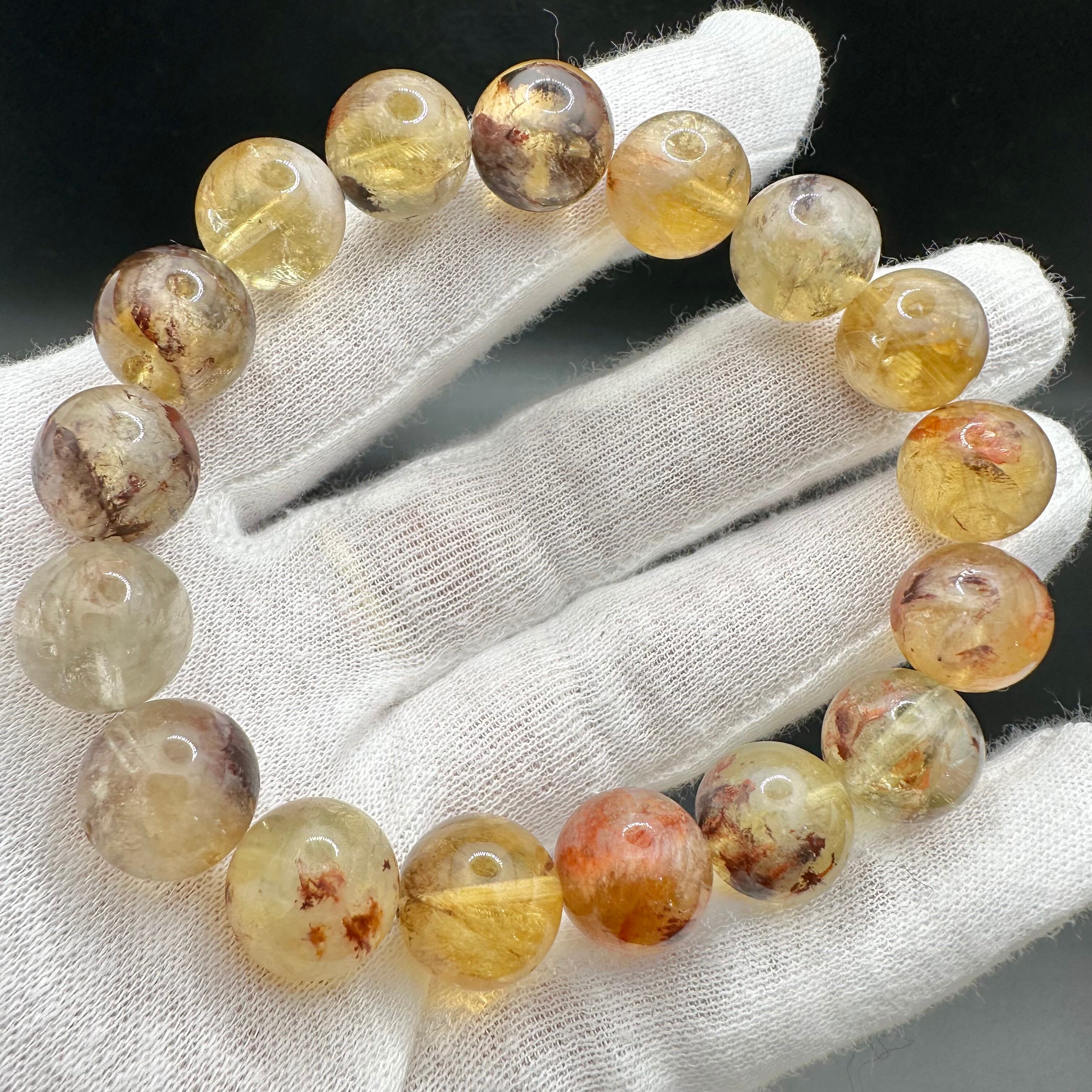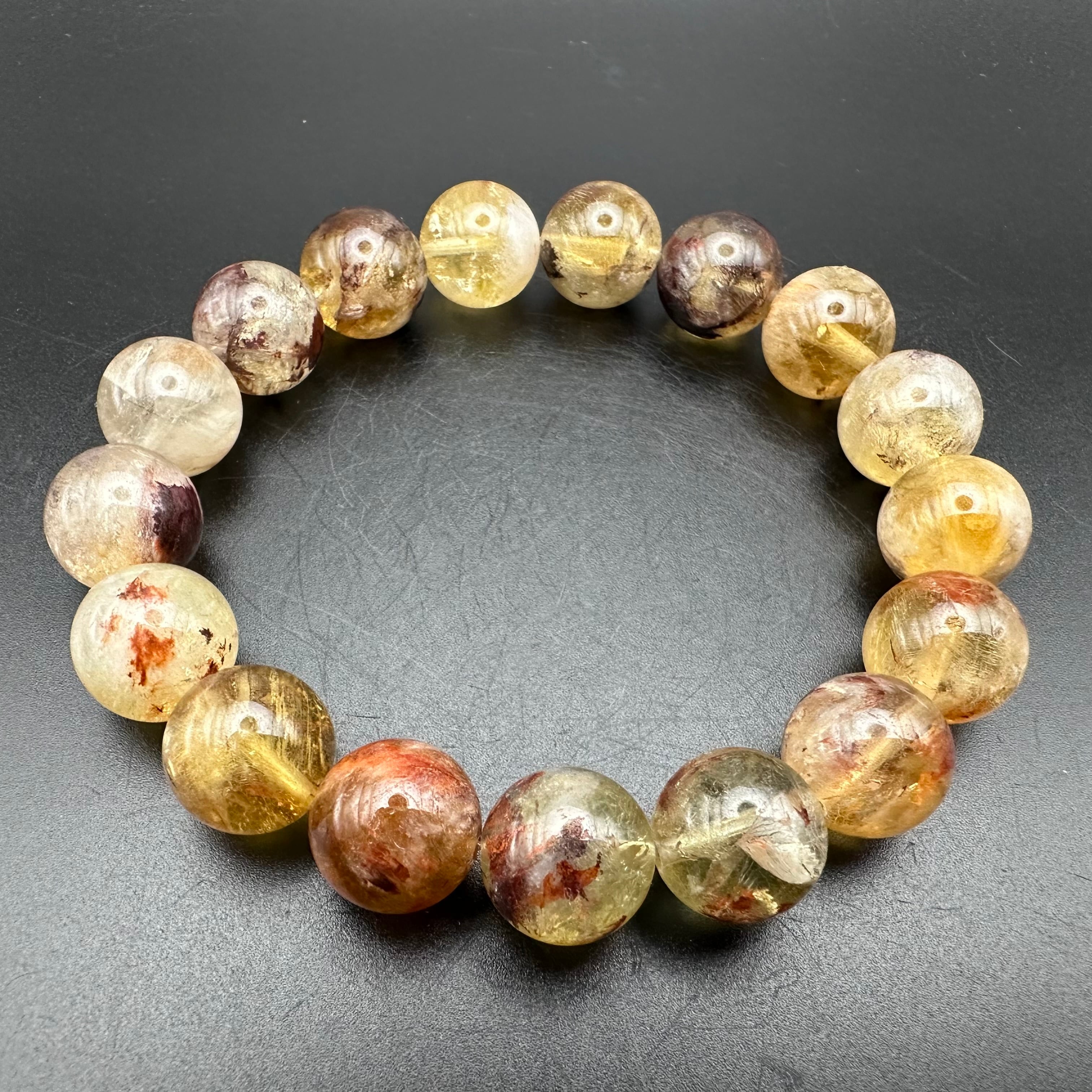 他にもゲーサイトなど様々な鉱物が透明感高い水晶の中に美しくインクルージョンされたとっても魅力的で不思議なブレスレットです。
