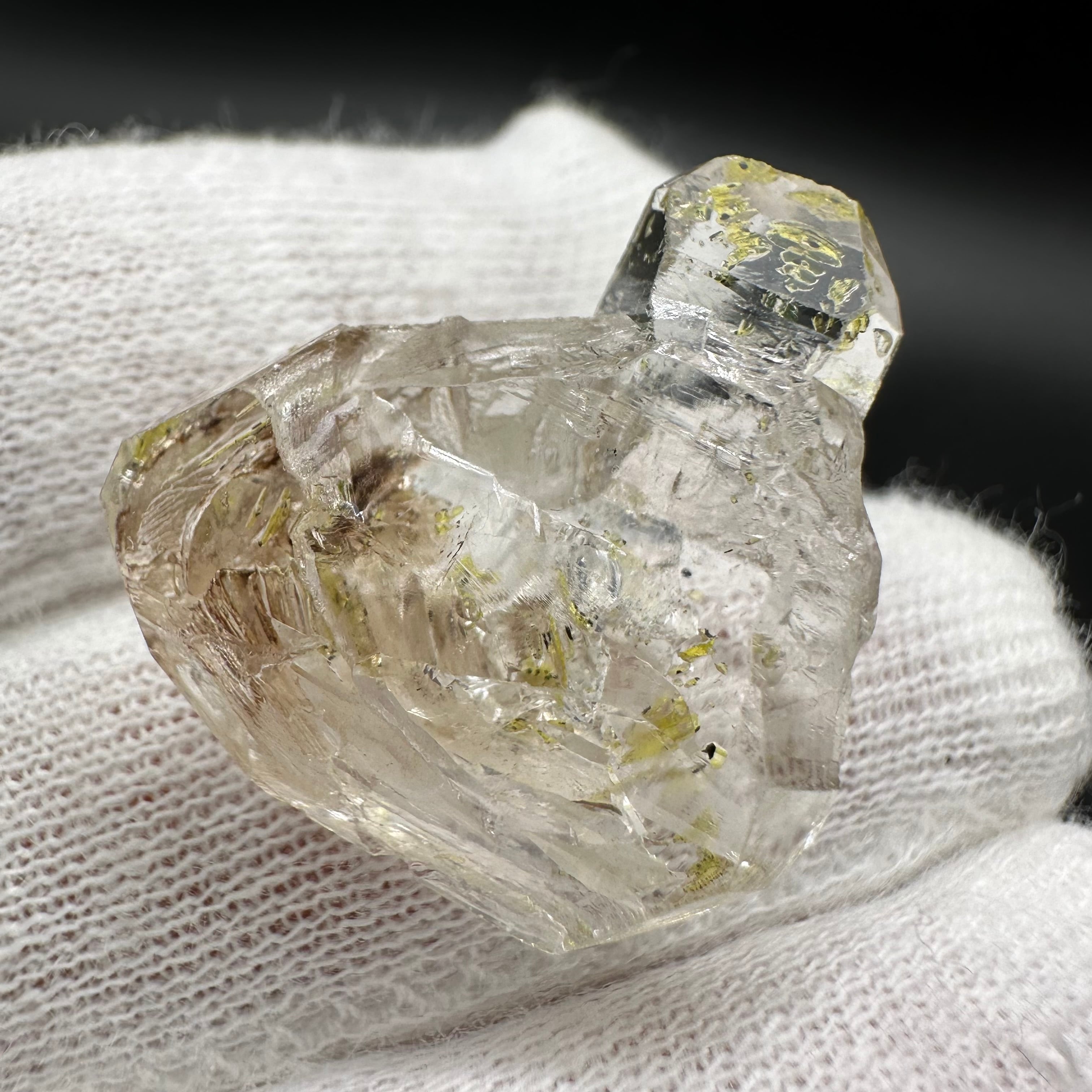通常の水晶よりも強い光沢感を示すのは、成分として微量のタールの様な成分を含むためとも言われます。