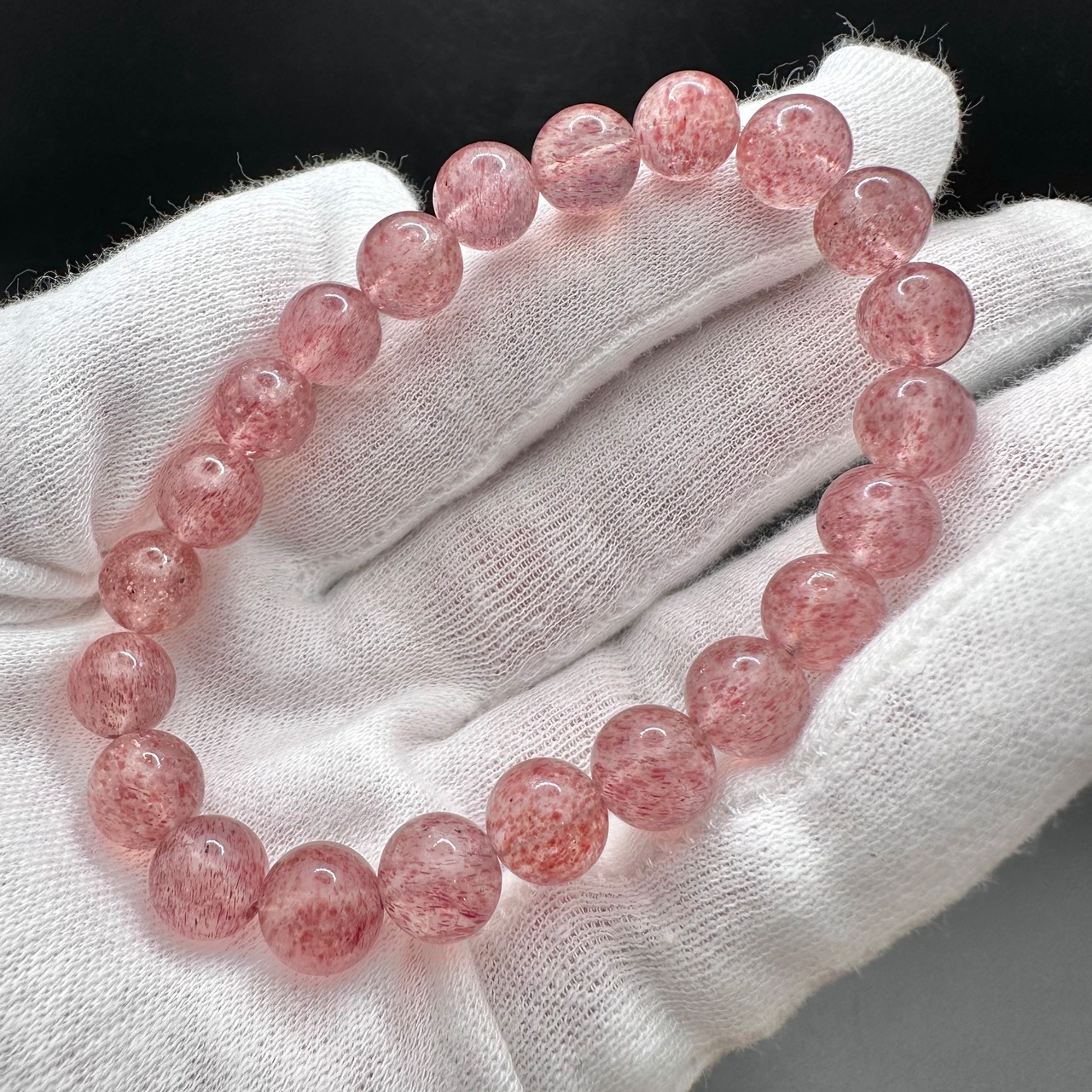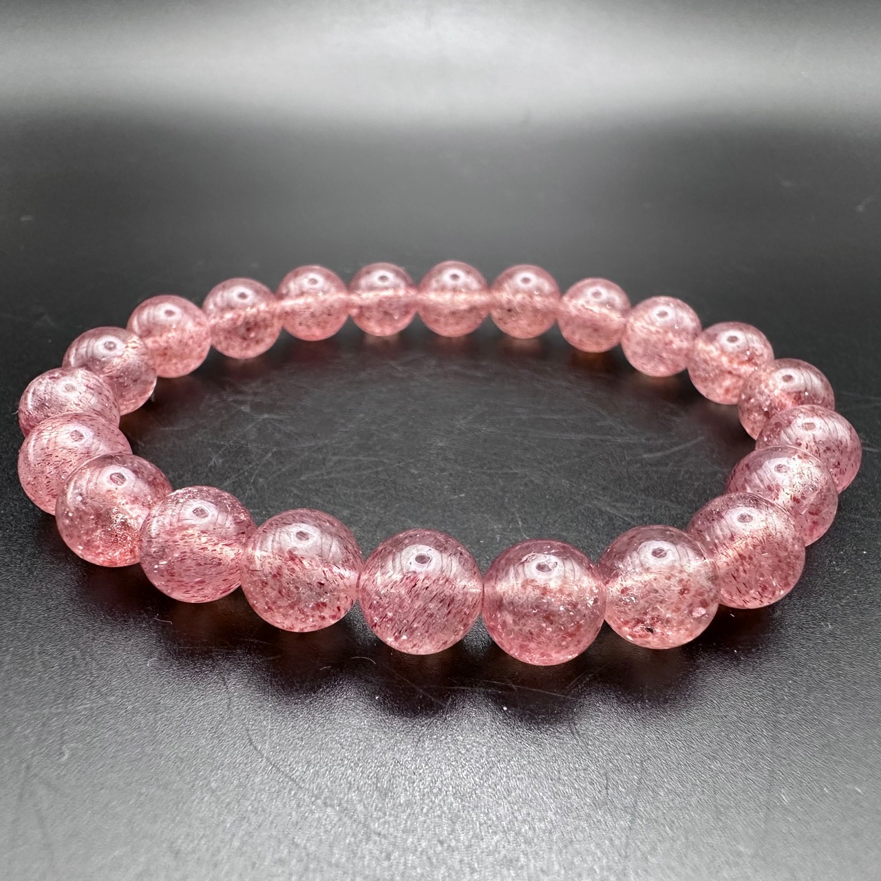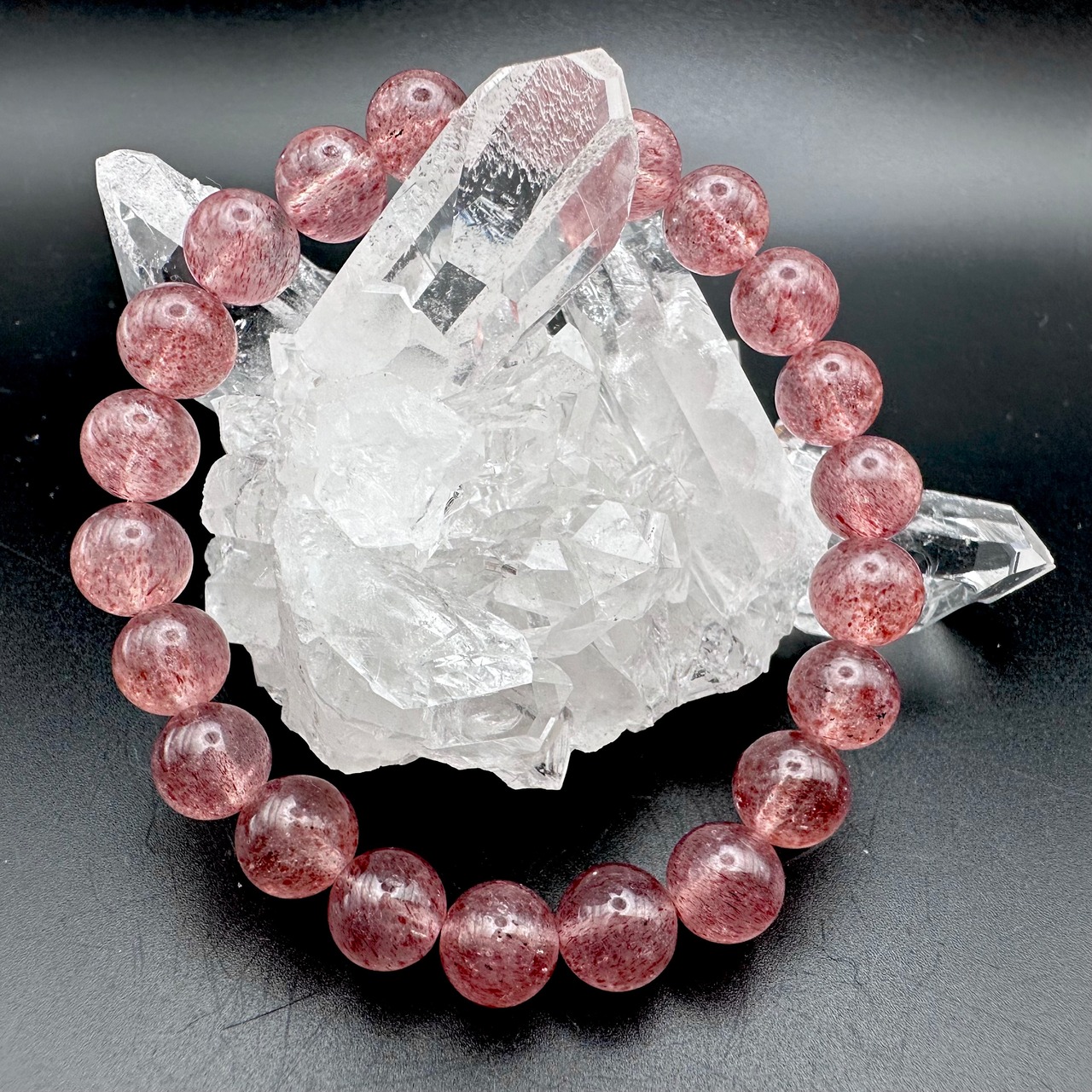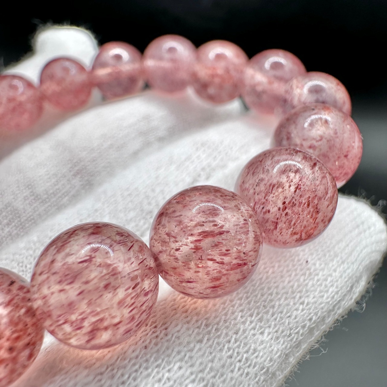 ピンクの細かな花びらの様なピンクエピドートとキラキラと細かく輝くマイカ、2種類の鉱物が水晶にインクルージョンされた、とても美しいブレスレットです。