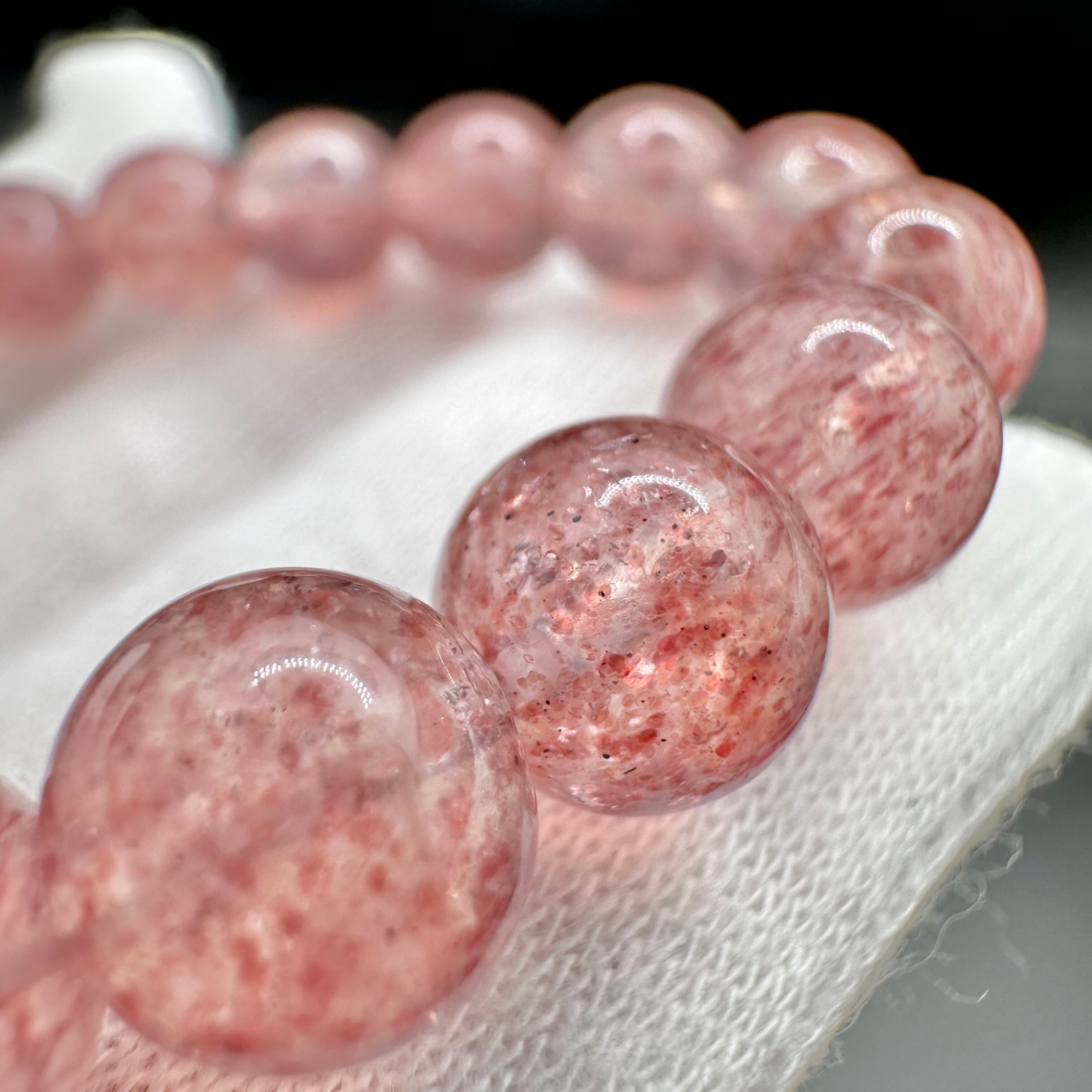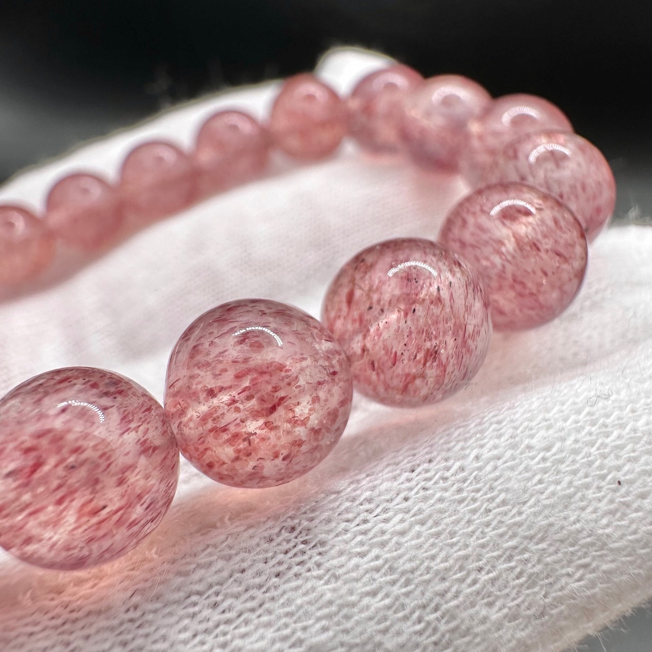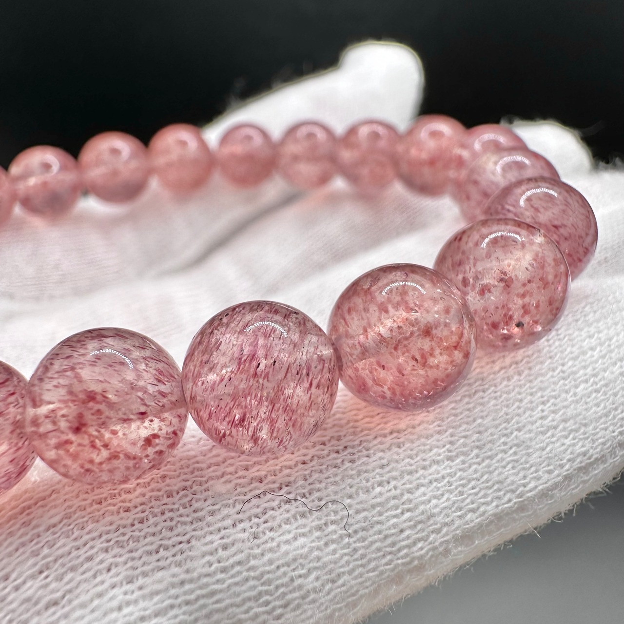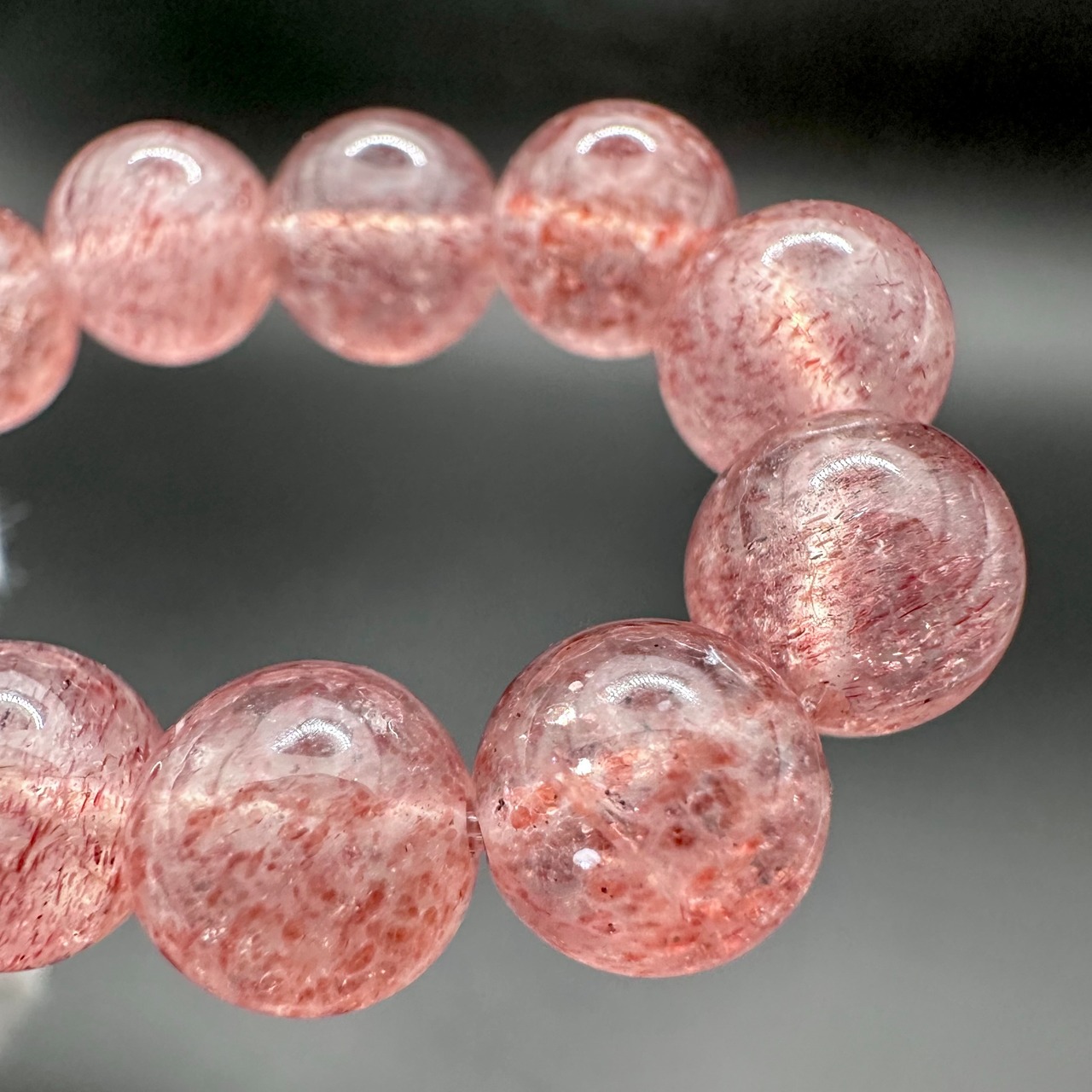 ピンクの細かな花びらの様なピンクエピドートとキラキラと細かく輝くマイカ、2種類の鉱物が水晶にインクルージョンされた、とても美しいブレスレットです。