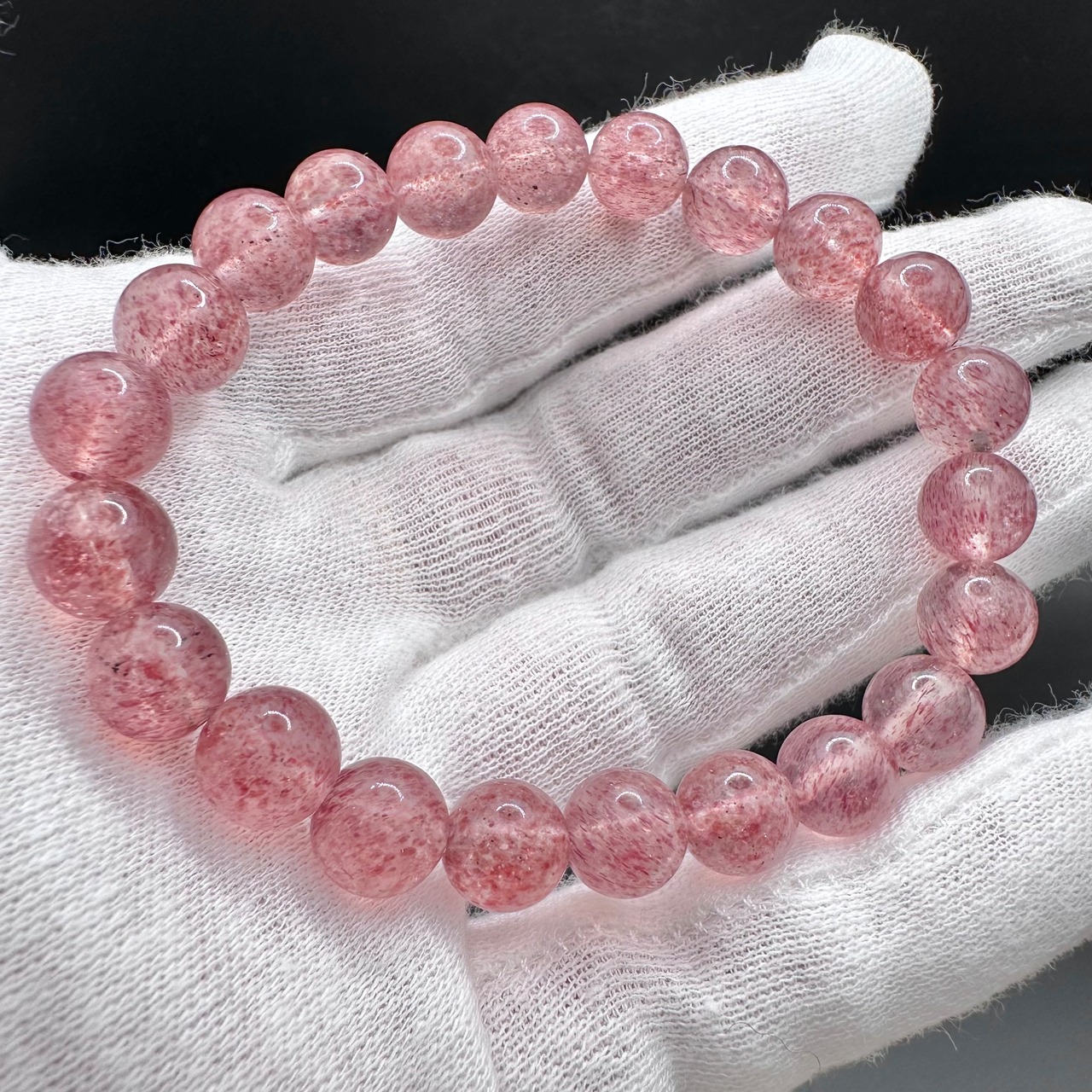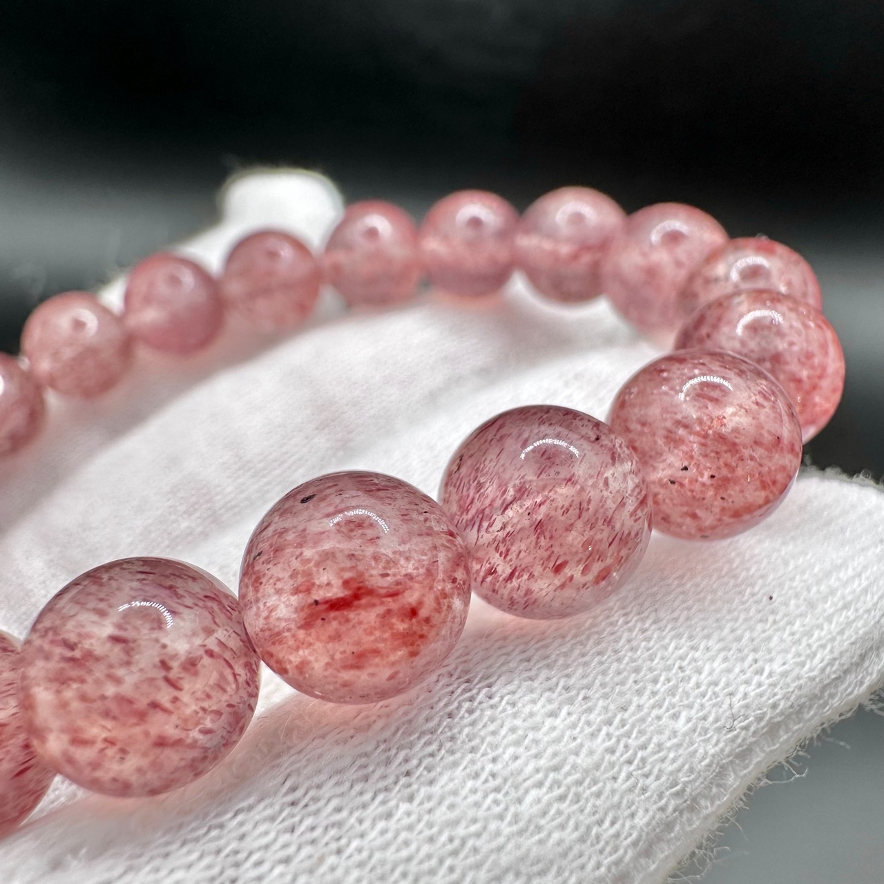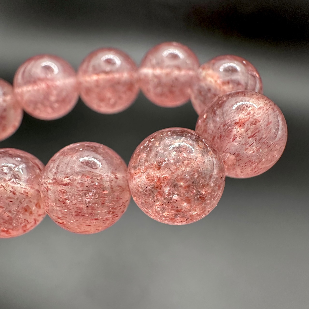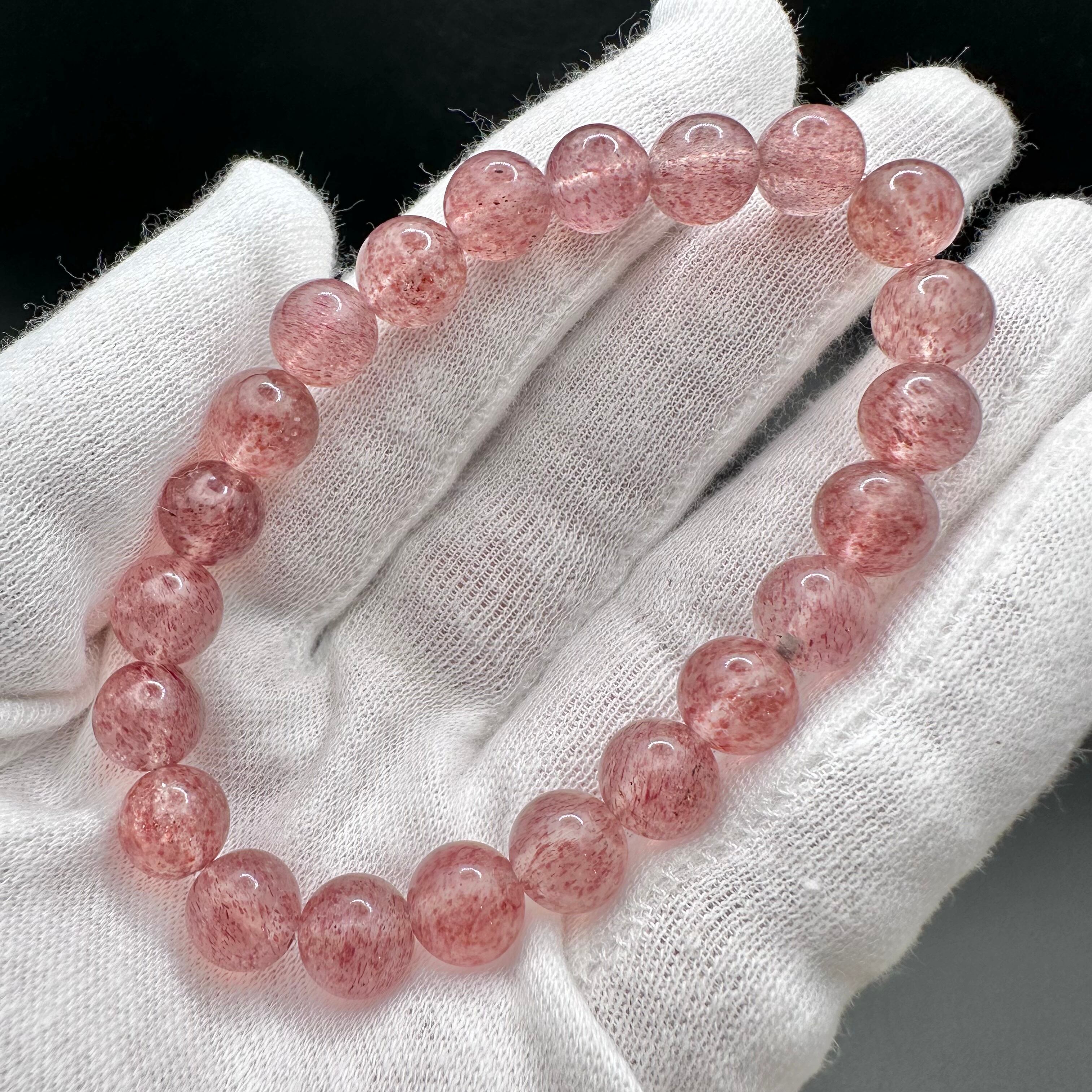 ピンクの細かな花びらの様なピンクエピドートとキラキラと細かく輝くマイカ、2種類の鉱物が水晶にインクルージョンされた、とても美しいブレスレットです。