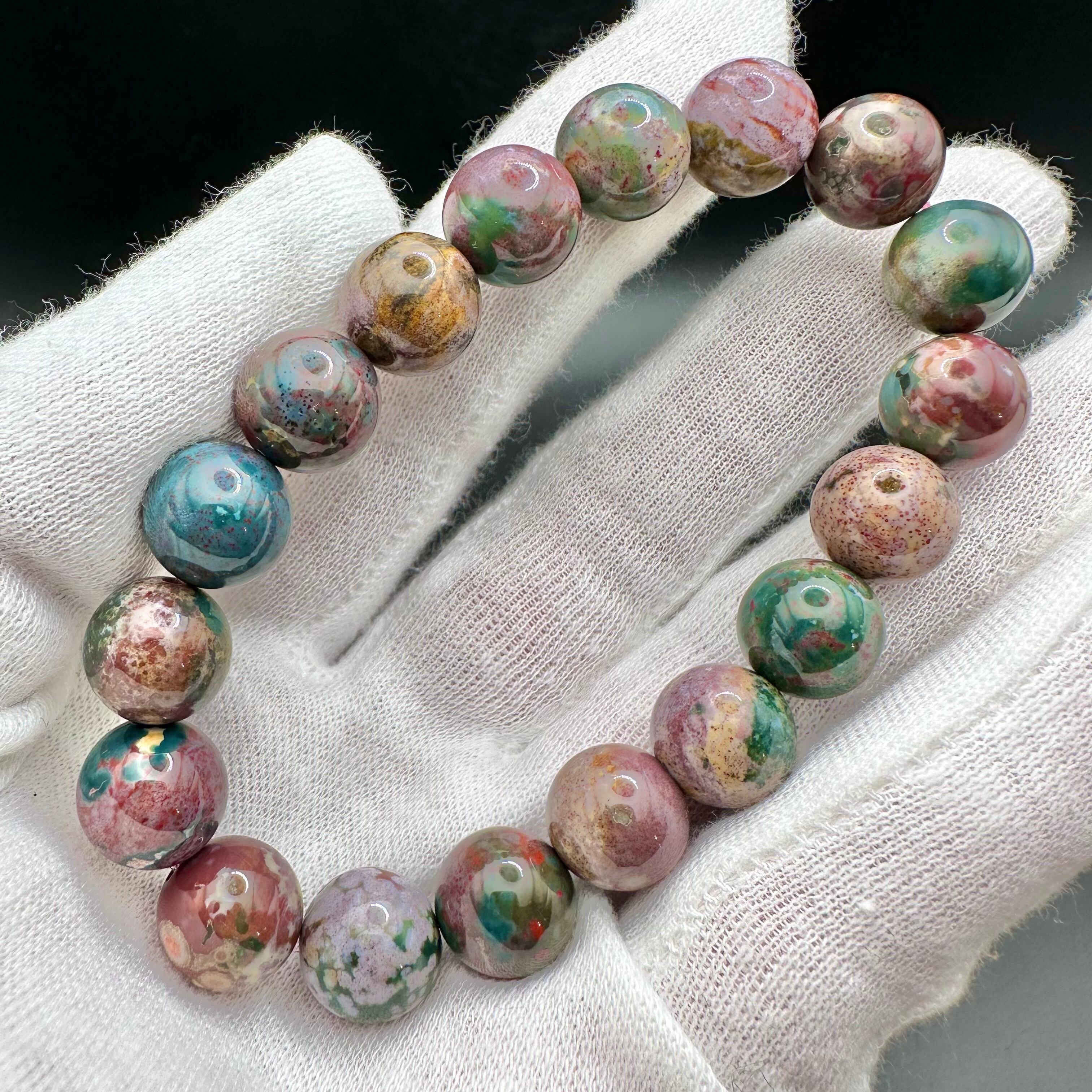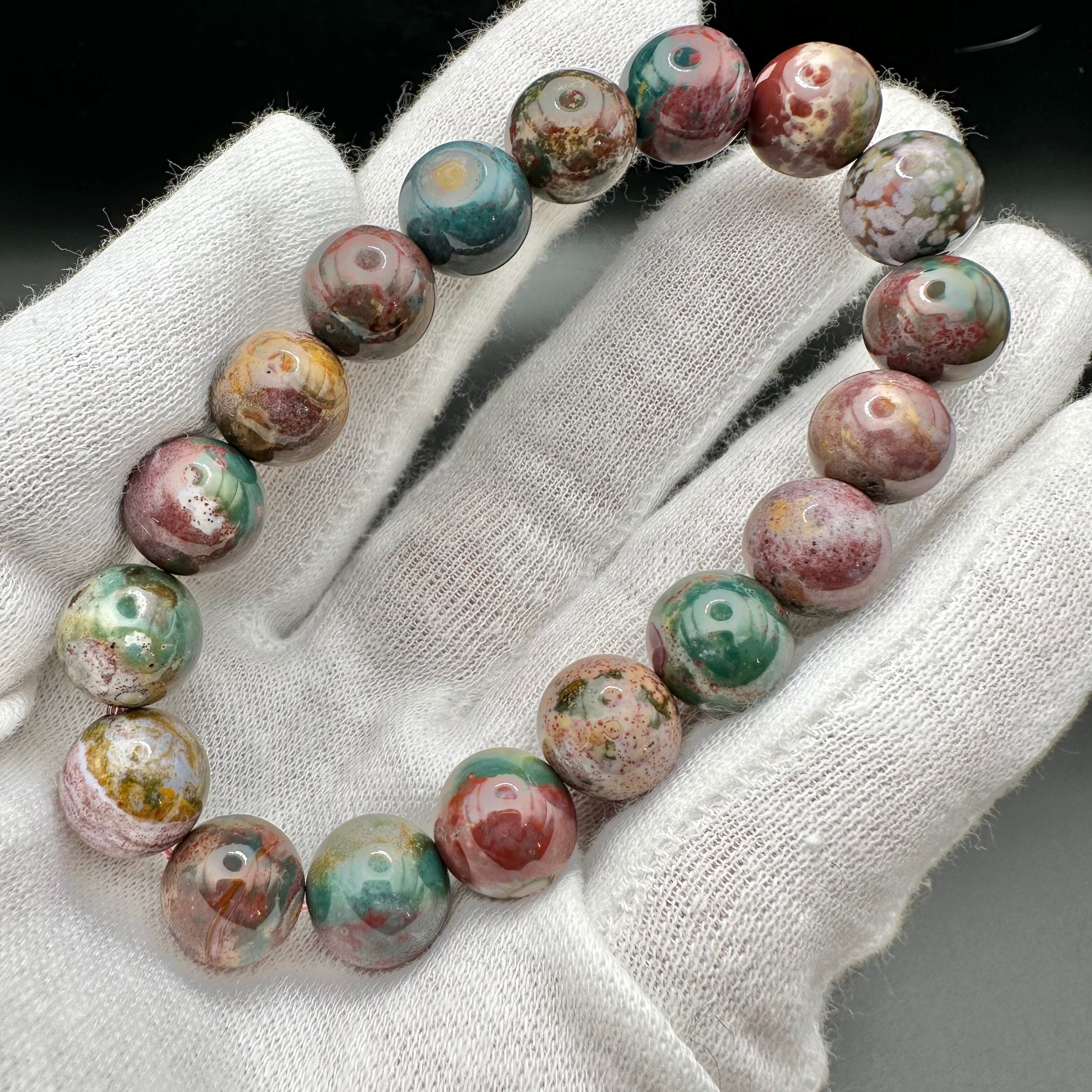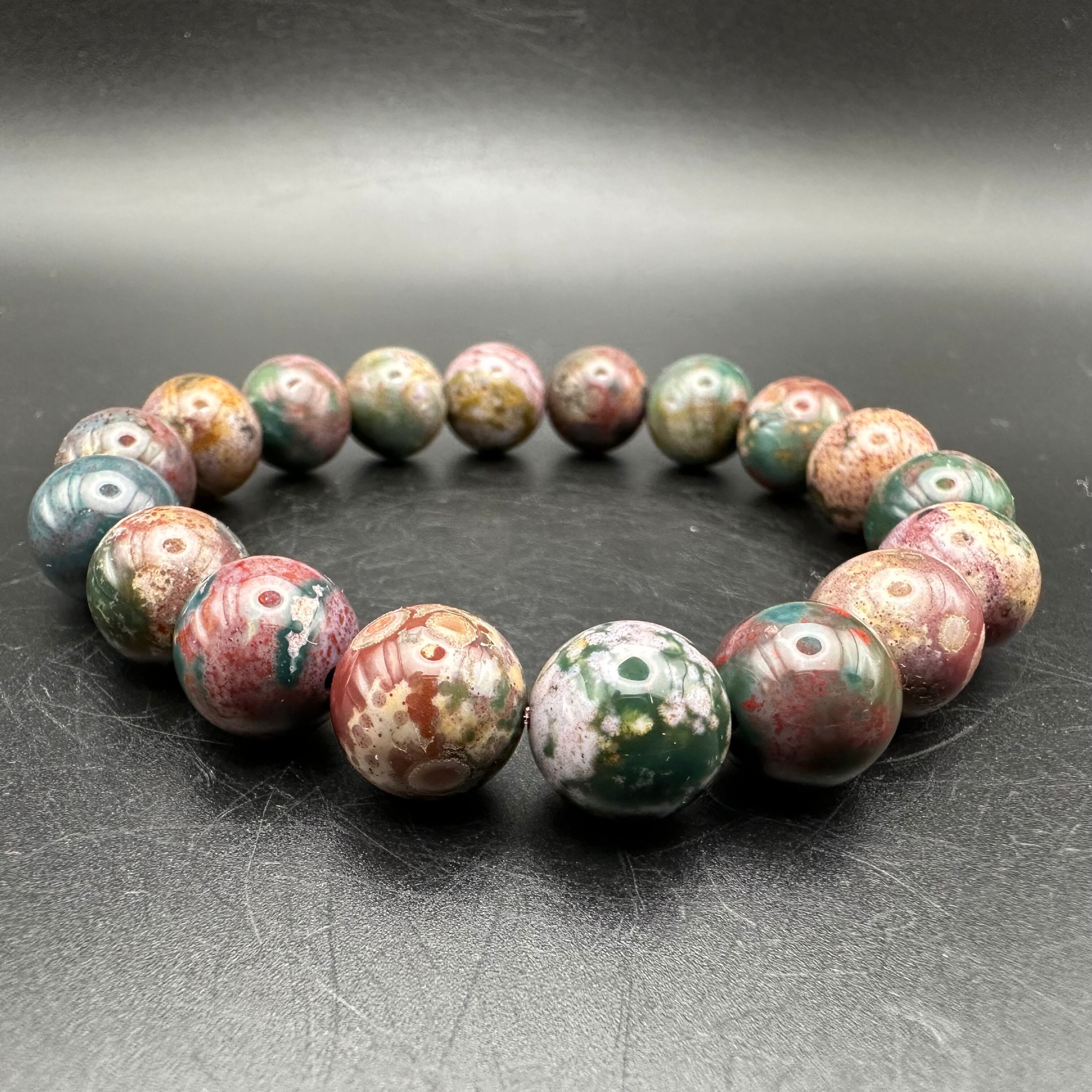 こちらのブレスレットはオーシャンジャスパーのカラーバリエーションの多さを堪能できるマルチカラータイプです。