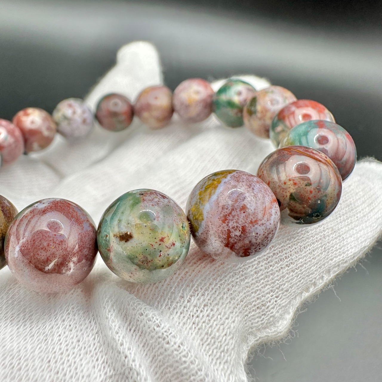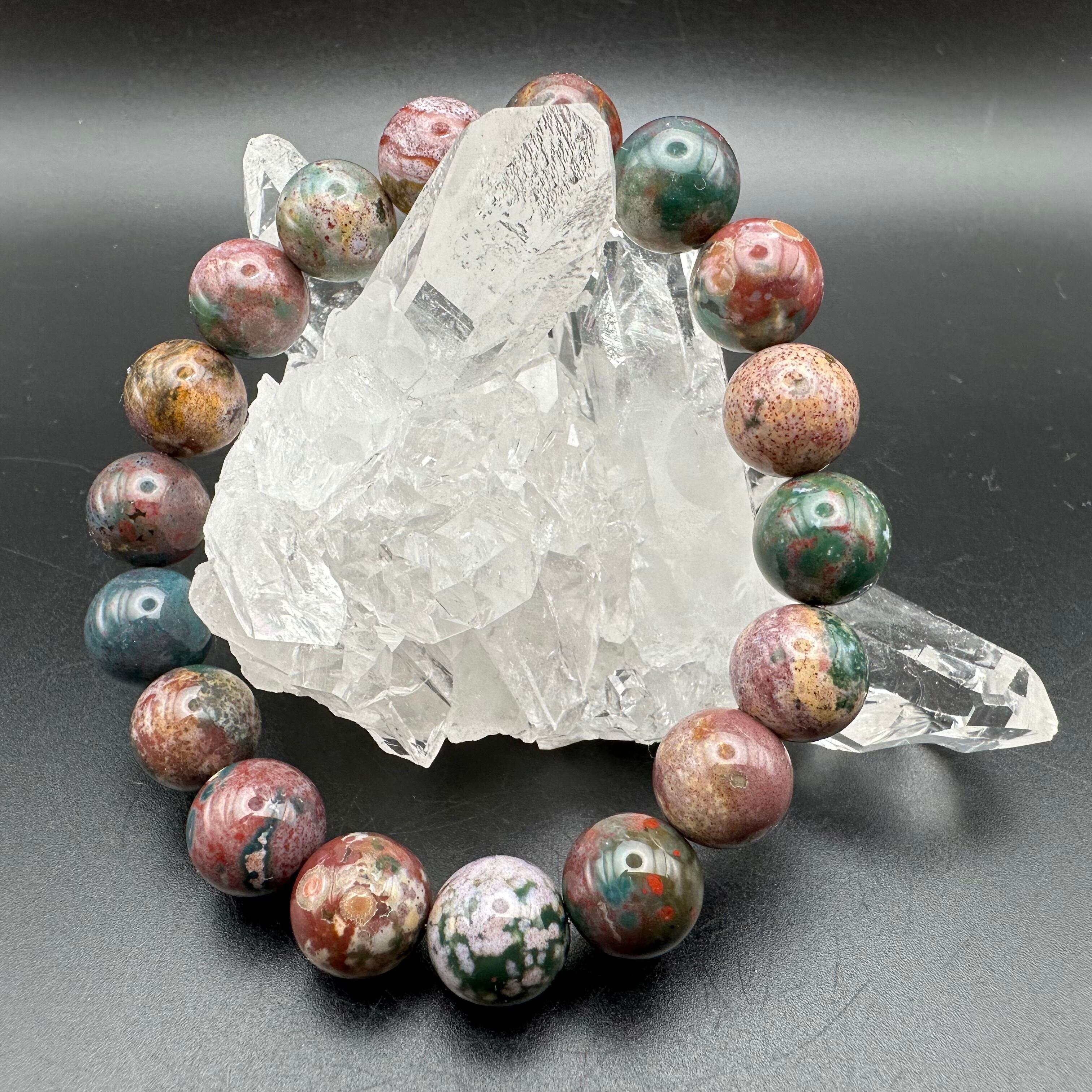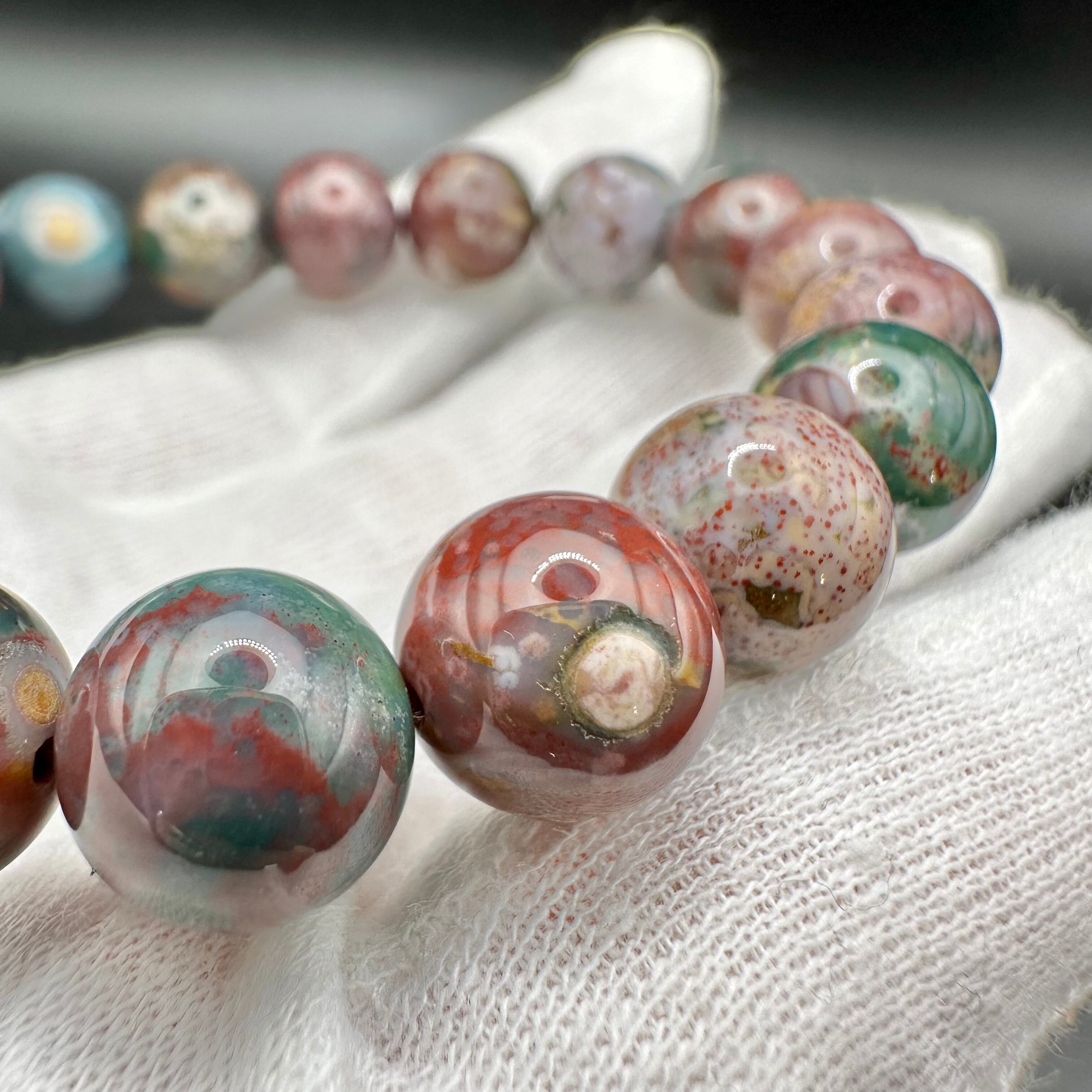 こちらのブレスレットはオーシャンジャスパーのカラーバリエーションの多さを堪能できるマルチカラータイプです。