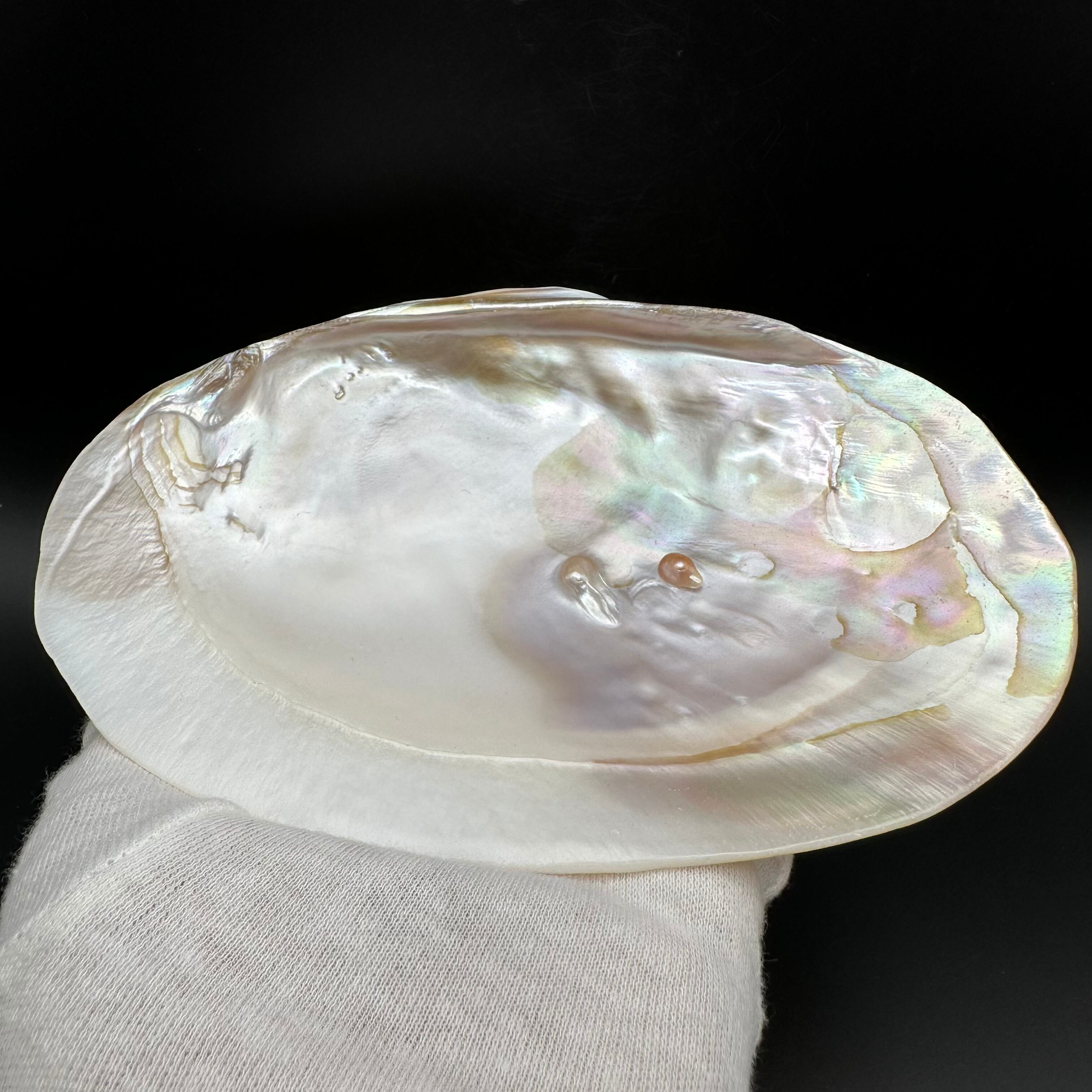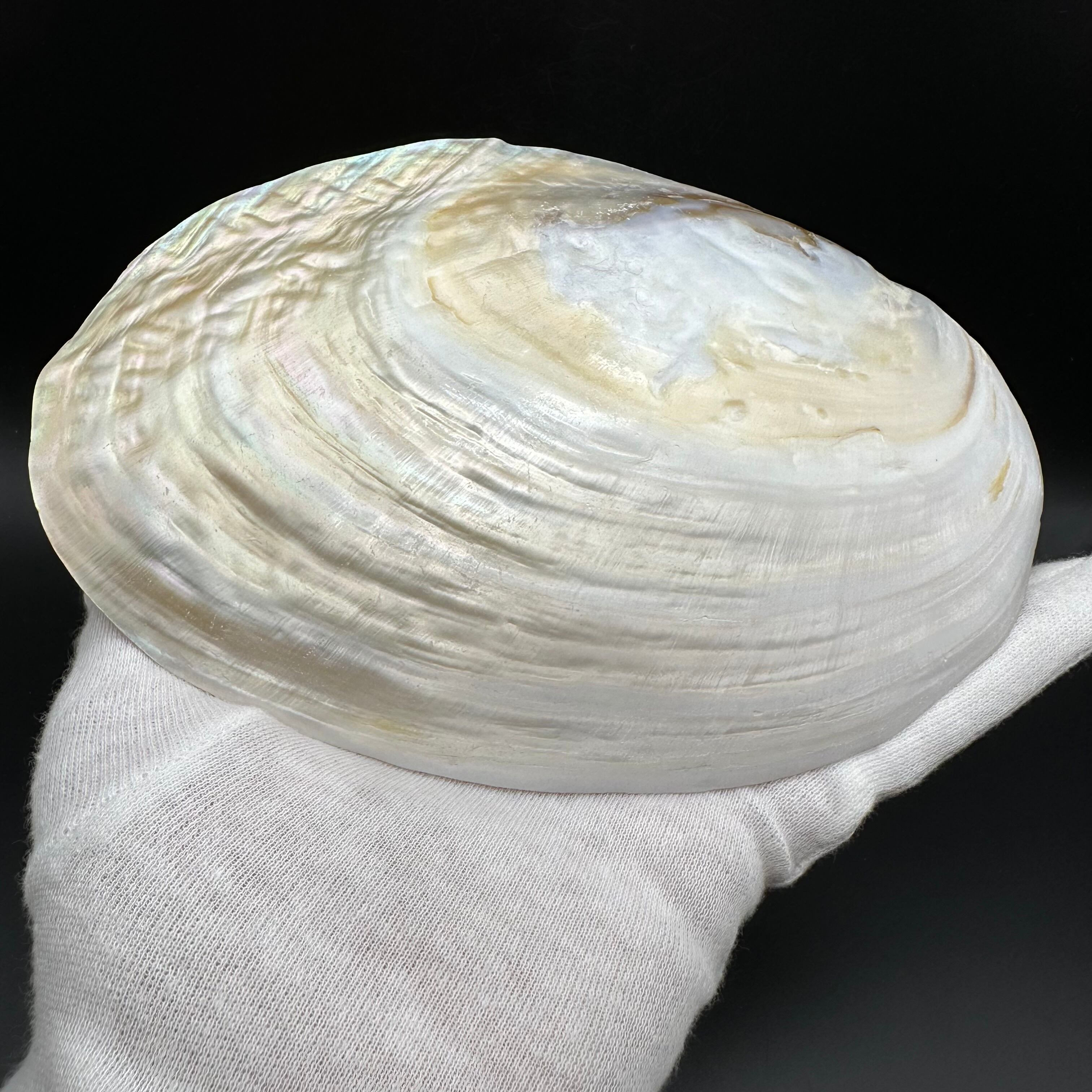 内側は白く真珠光沢があり、レインボーの輝きがとても美しいです。