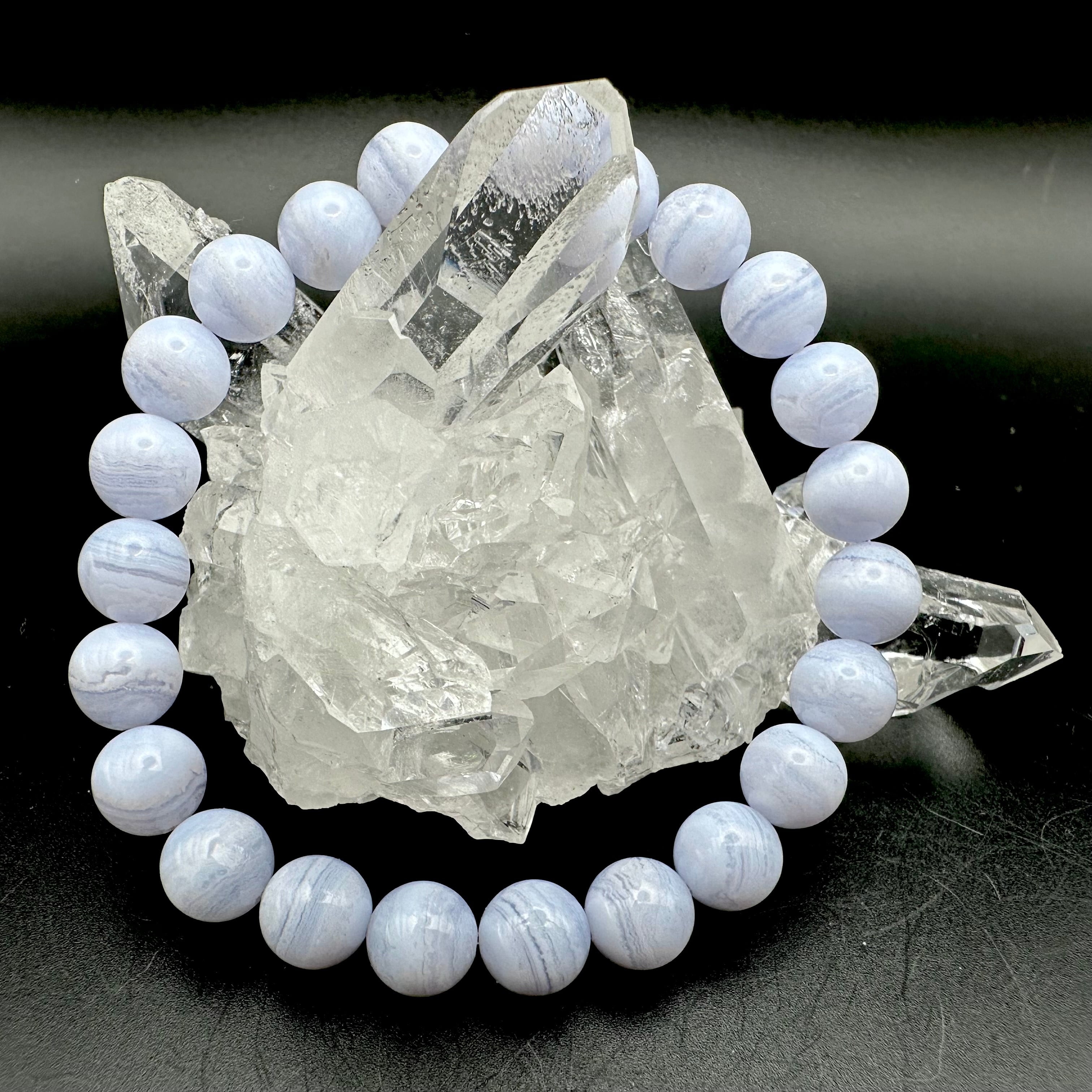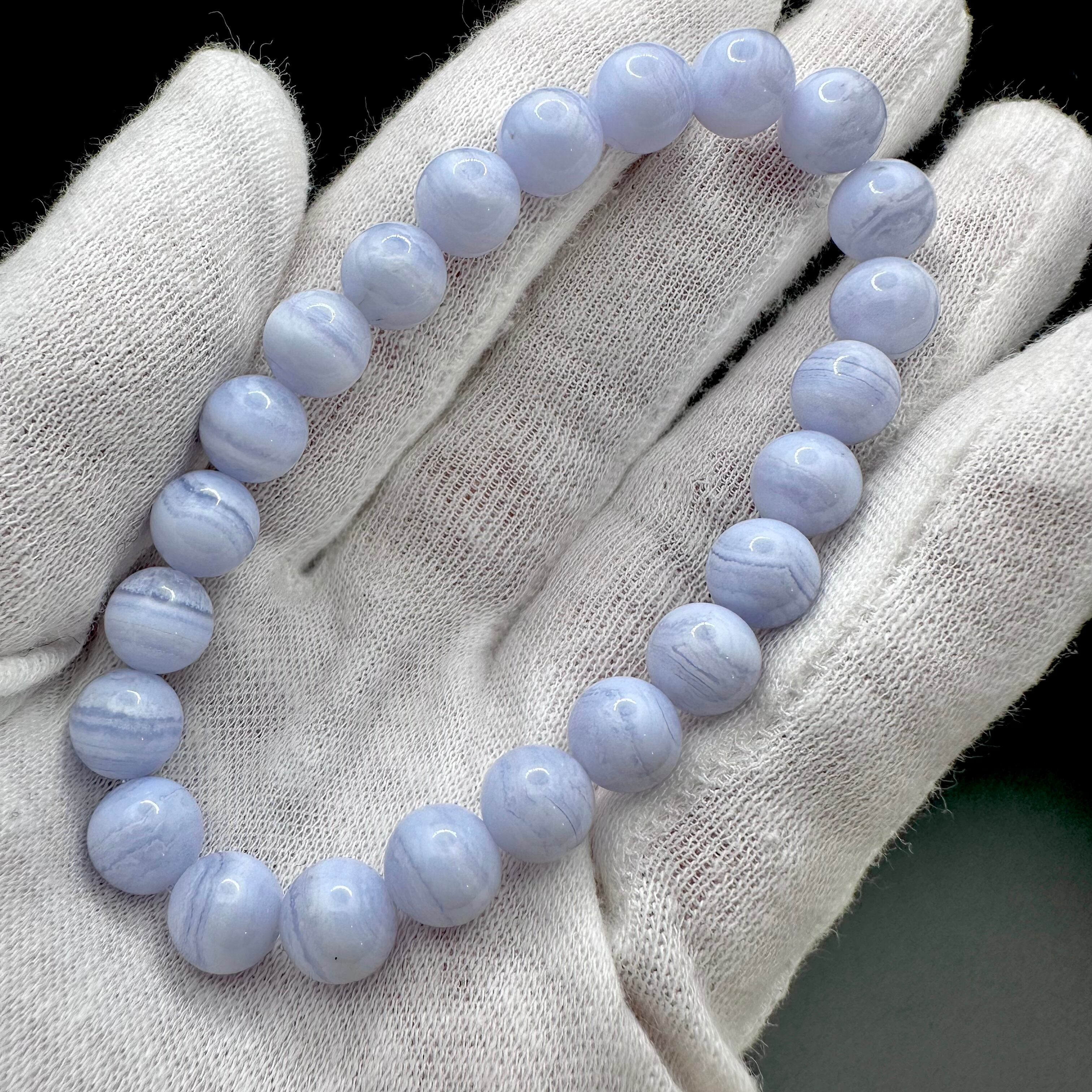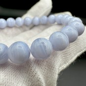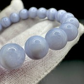 ブルーレースアゲートは、淡いブルーや白色が層状に重なって、表面に白い美しいレースのような模様が見られる石です。