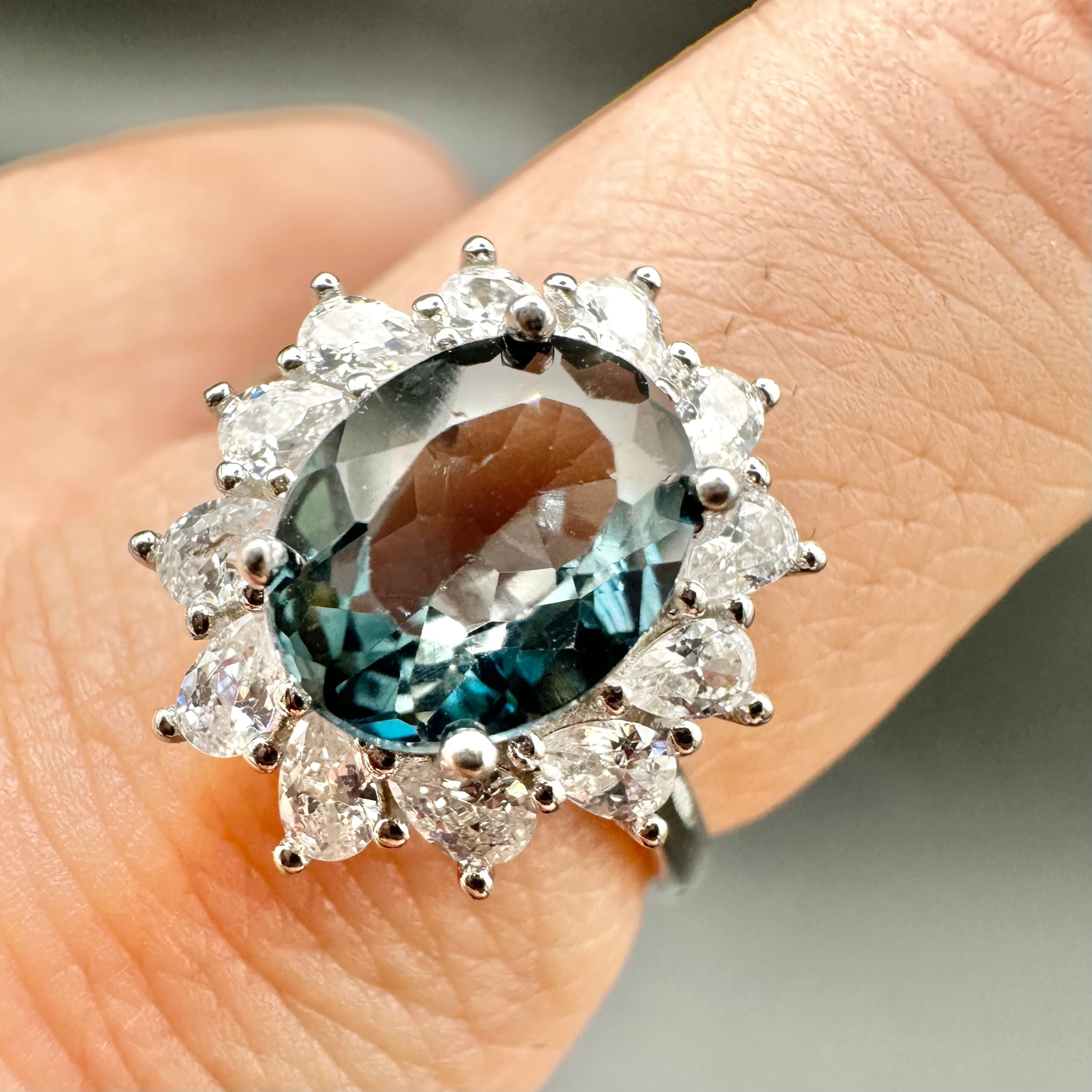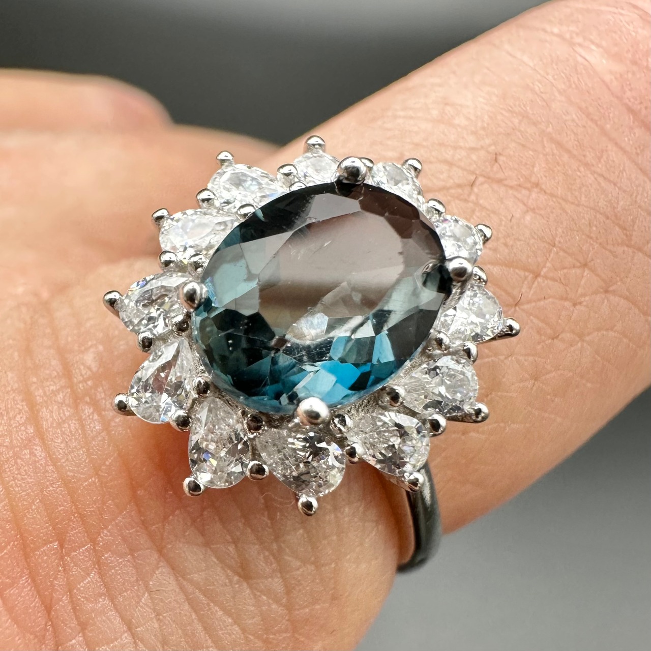 こちらのリングはサイズ感がしっかりあるメインのロンドンブルートパーズをドロップ型のカットを施されたキュービックジルコニアが美しくセッティングされています。