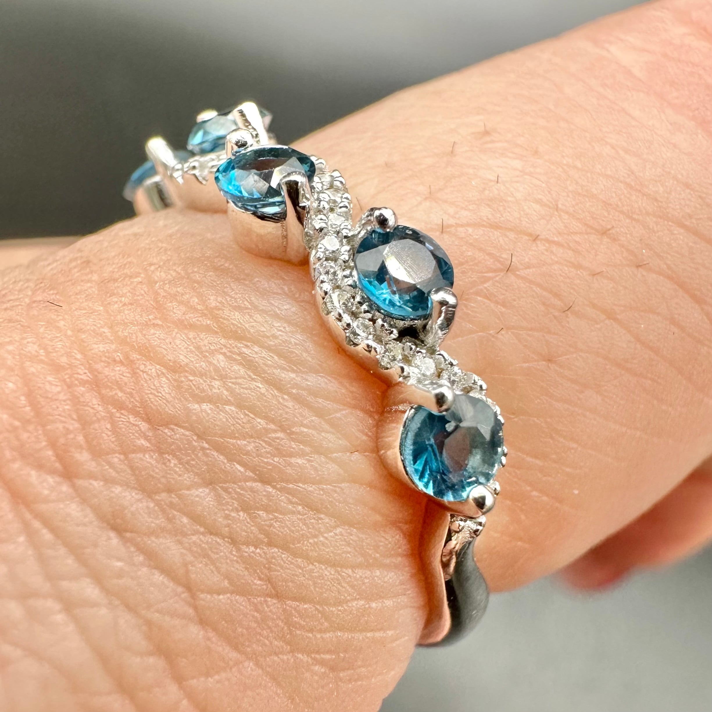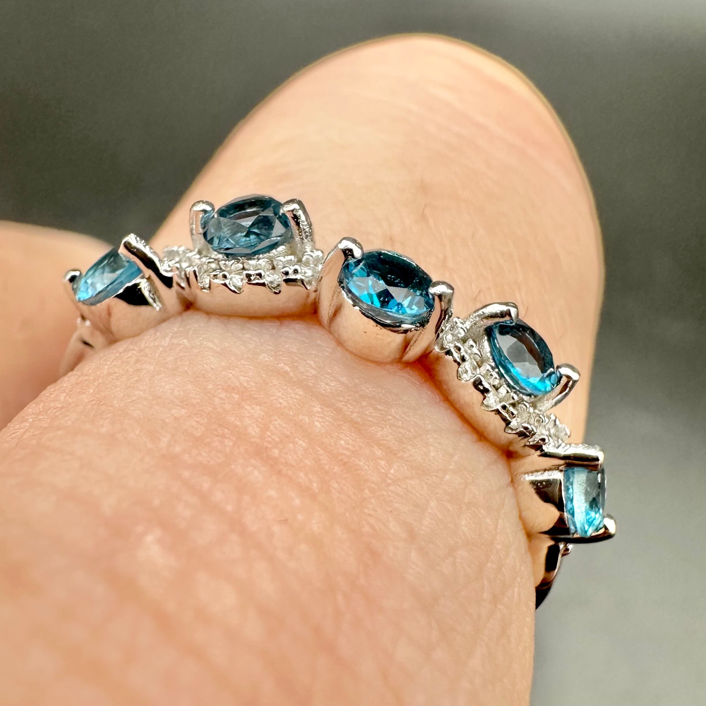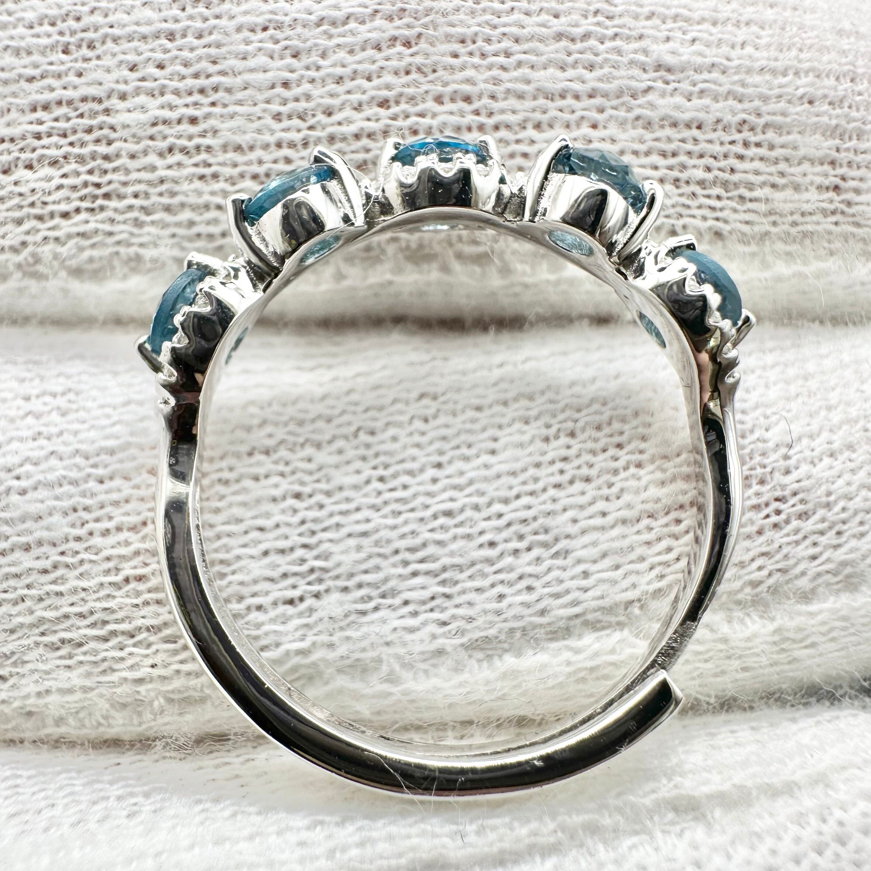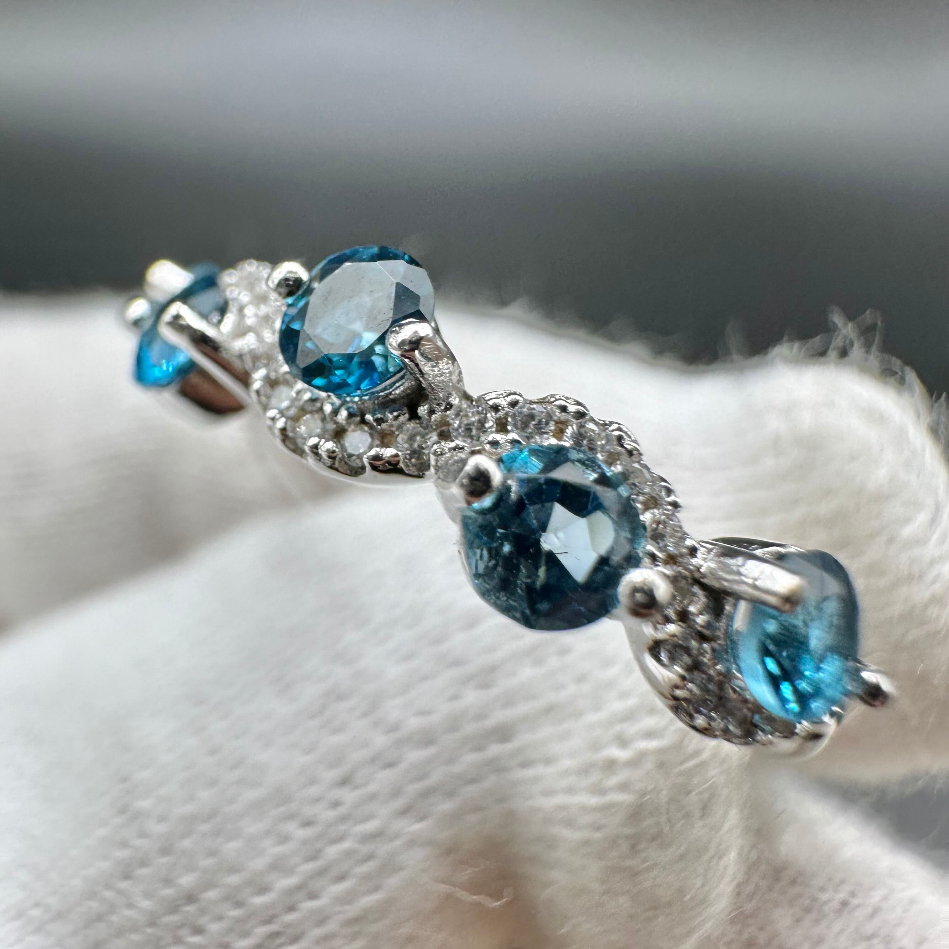 一つ一つの石は小さいですが、カラーが濃く大変美しいロンドンブルートパーズが5石使われ、とても華やかです。