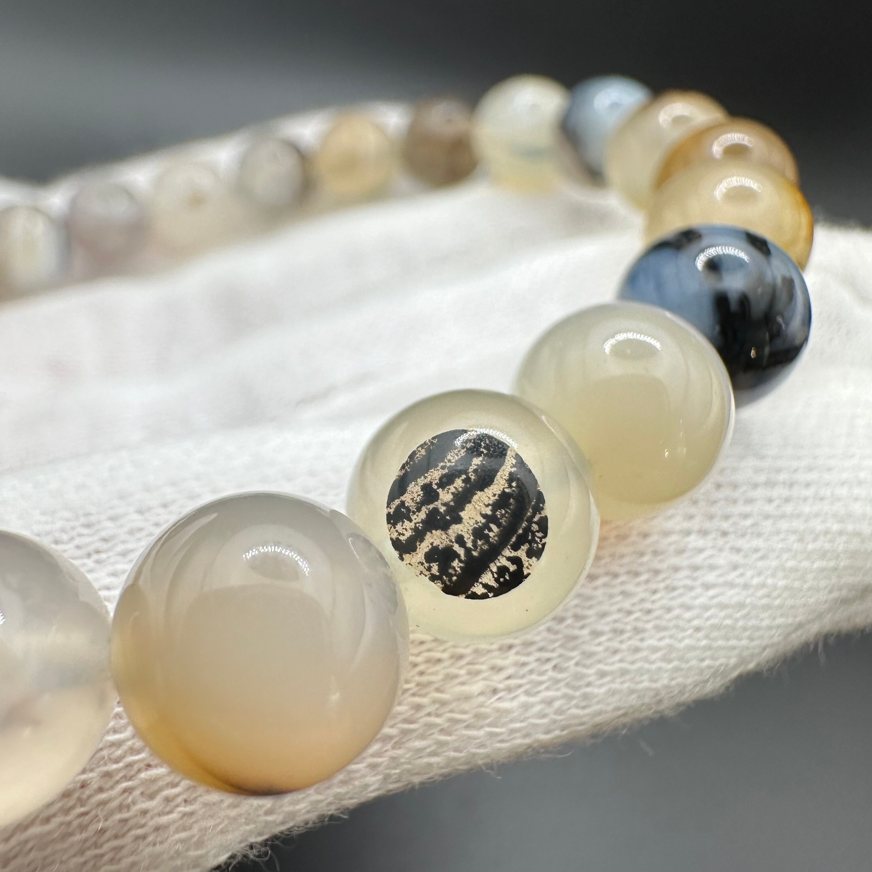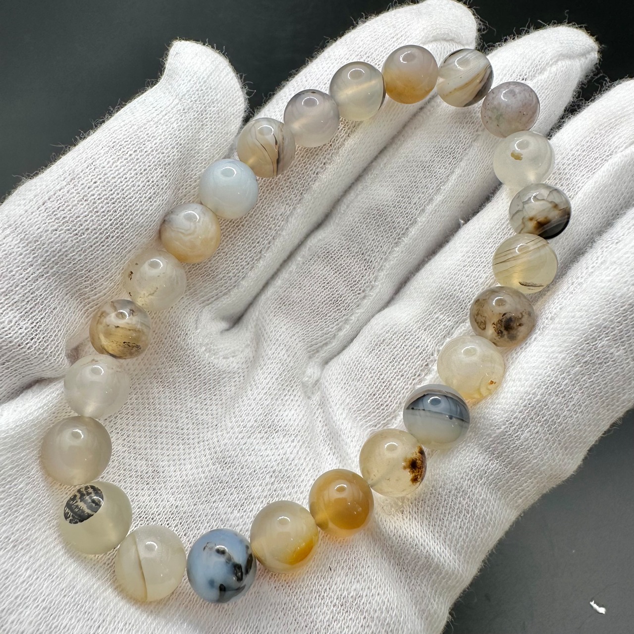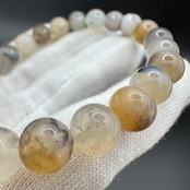 こちらのブレスレットはナチュラルカラーのアゲートならではの風合いと模様が楽しめる一本です。